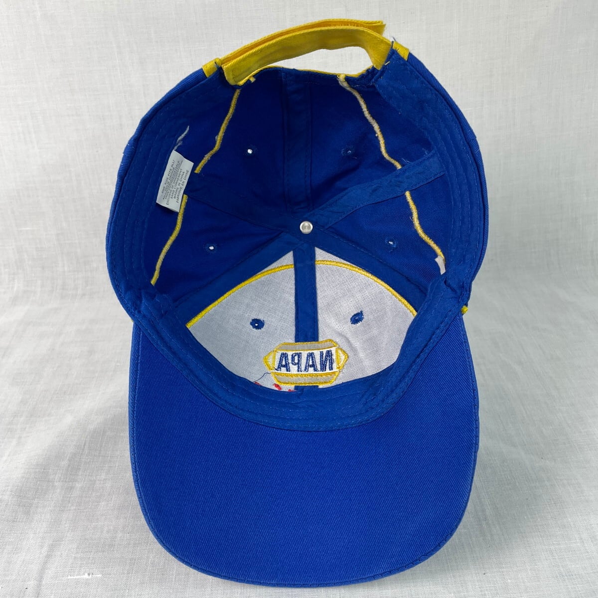 ■NAPA Racing ナパ レーシング ベースボールキャップ 企業ロゴ刺繍 メンズ レディース 古着 車 モーターレース 青色 イエロー【帽子】/ブルー 【サイズ】表記 不明(フリーサイズ) ※計測値をご確認ください。 高さ…11 つば…7 頭周り(内径)…56.5~63.5 【生産国】中国製 【素材】コットン100% 【状態】ツバが一部浮き上がっている箇所があります(写真4) 画像にてご確認ください。 【c251217105】 ※古着は洗濯、検品などのケアを行っております。(新品・デッドストックは洗濯していません。)