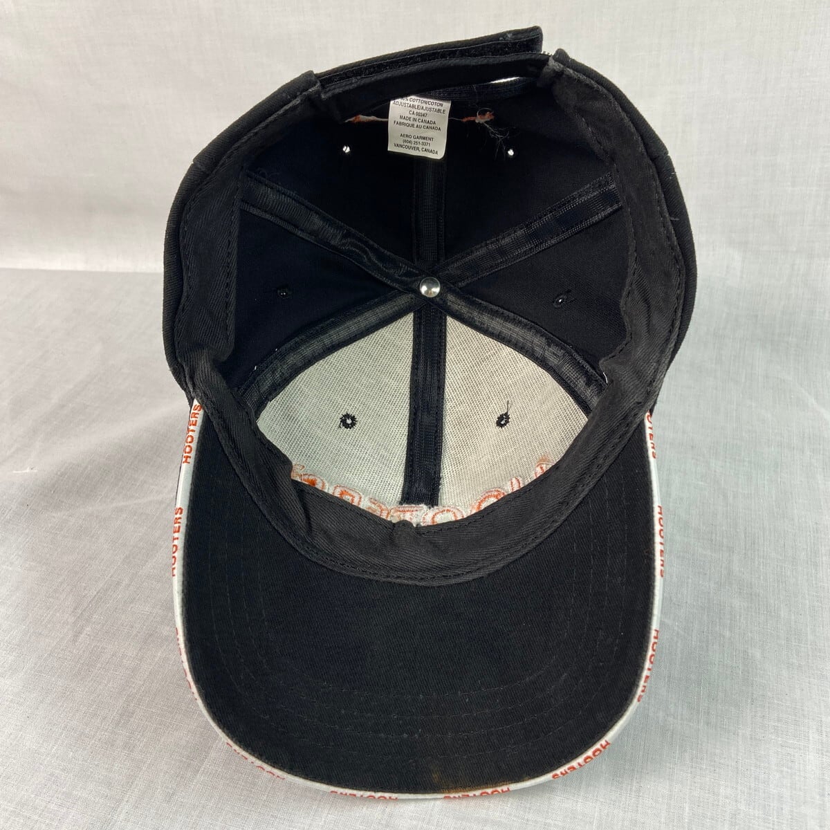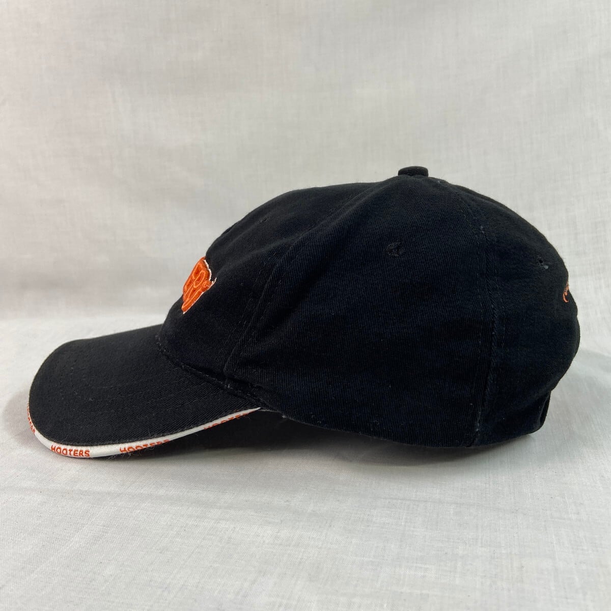 ■HOOTERS フーターズ ベースボールキャップ 企業ロゴ刺繍 メンズ レディース 古着 ユニセックス 黒色【帽子】/ブラック 【サイズ】表記不明 ※計測値をご確認ください。 高さ…11 つば…7 頭周り(内径)…54~61 【生産国】カナダ製 【素材】コットン100% 【状態】ツバの裏側に薄汚れがあります。 画像にてご確認ください。 【c251216109】 ※古着は洗濯、検品などのケアを行っております。(新品・デッドストックは洗濯していません。)
