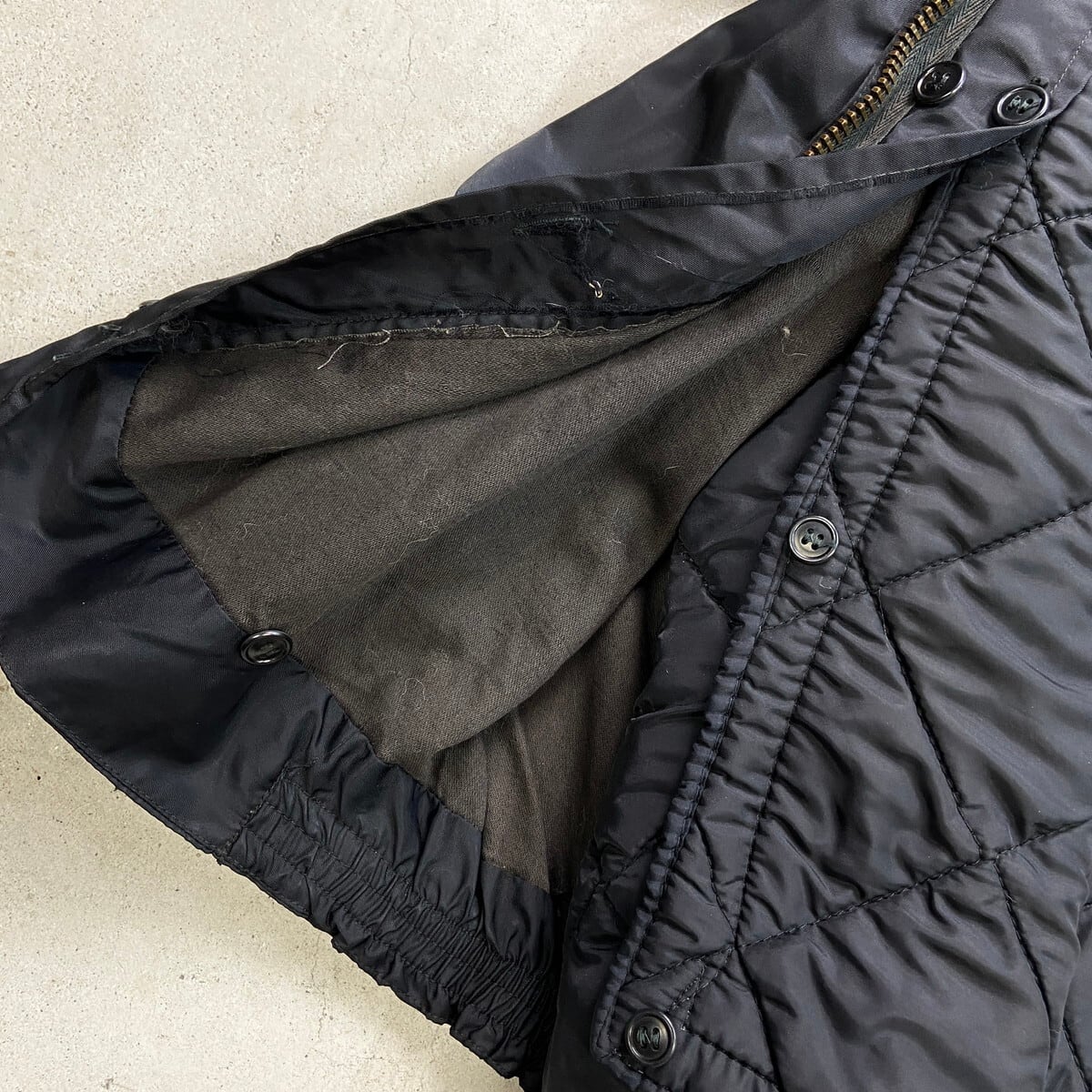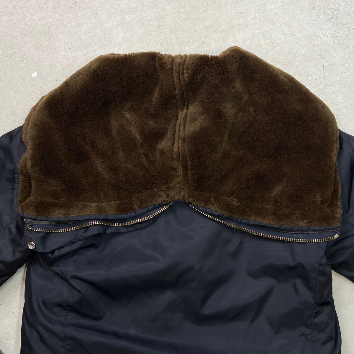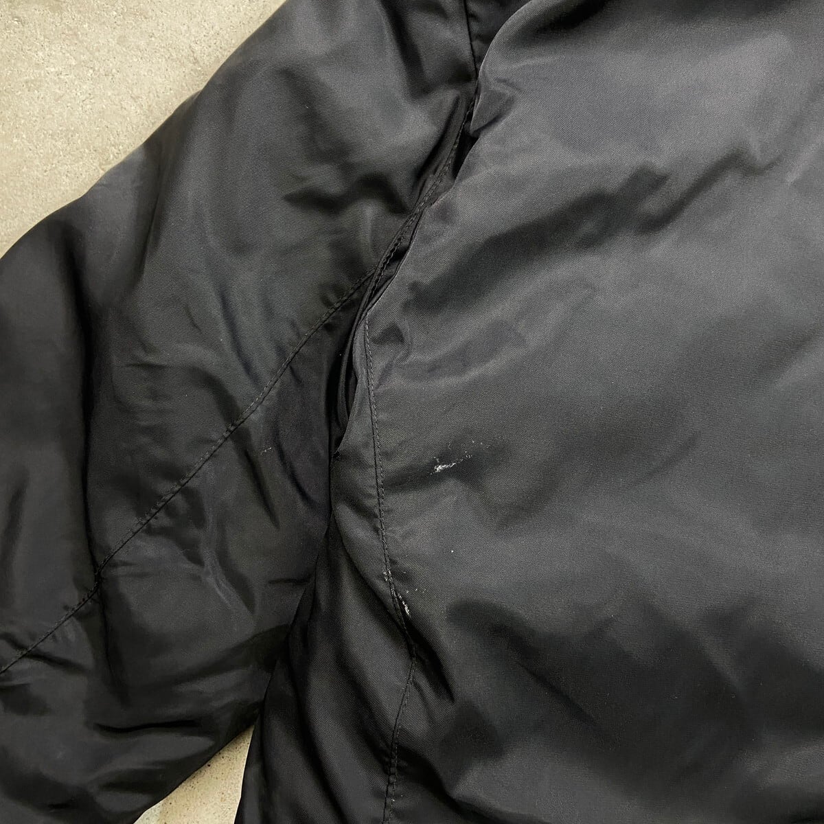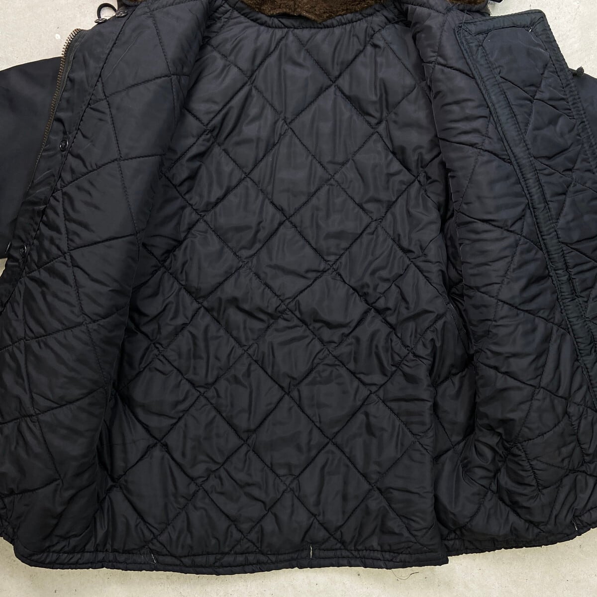 ■古着 UNKNOWN ミリタリーフライトジャケット N-2Bタイプ メンズL相当 ヴィンテージ VINTAGE USED キルティングライナー フード開閉式 アメカジ 黒色【ミリタリージャケット】/ブラック ◎フード開閉式などから造りは、着丈の長いN-2Bのサンプリングかと思われます。 【サイズ】表記不明(着用感メンズL相当) モデル身長172cm 計測値をご確認ください。 着丈…73 身幅…60 肩幅…52 袖丈…60 【生産国】不明 【素材】不明(おそらくナイロンかと思われます) 【状態】バックサイド左脇付近に汚れや小穴が数か所ございます。(写真8) 画像にてご確認ください。 【c251215108】 ※古着は洗濯、検品などのケアを行っております。(新品・デッドストックは洗濯していません。) ※モニターの発色により実物と異なる場合がございます。予めご了承ください。 ※ 海外直輸入USED品になります。