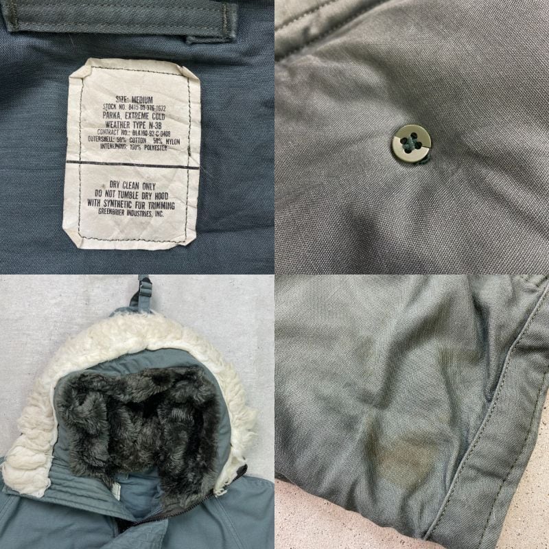 ■古着 USAF U.S.AIR FORCE 米軍実品 N-3B ミリタリー フライトジャケット メンズL相当 78年納品 70s VINTAGE ヴィンテージ USED SCOVILLジップ ライトカーキグリーン【ミリタリージャケット】/カーキグリーン 【サイズ】表記 MEDIUM(実寸メンズL相当) モデル身長172cm 計測値をご確認ください。 着丈…84.5 身幅…65 裄丈…81 袖下…46 【素材】表地 コットン50%,ナイロン50% 中綿 ポリエステル100% 【状態】数か所に薄汚れがありますが、まだまだ愛用していただけます。 画像にてご確認ください。 【c251215104】 ※古着は洗濯、検品などのケアを行っております。(新品・デッドストックは洗濯していません。) ※モニターの発色により実物と異なる場合がございます。予めご了承ください。 ※ 海外直輸入USED品になります。