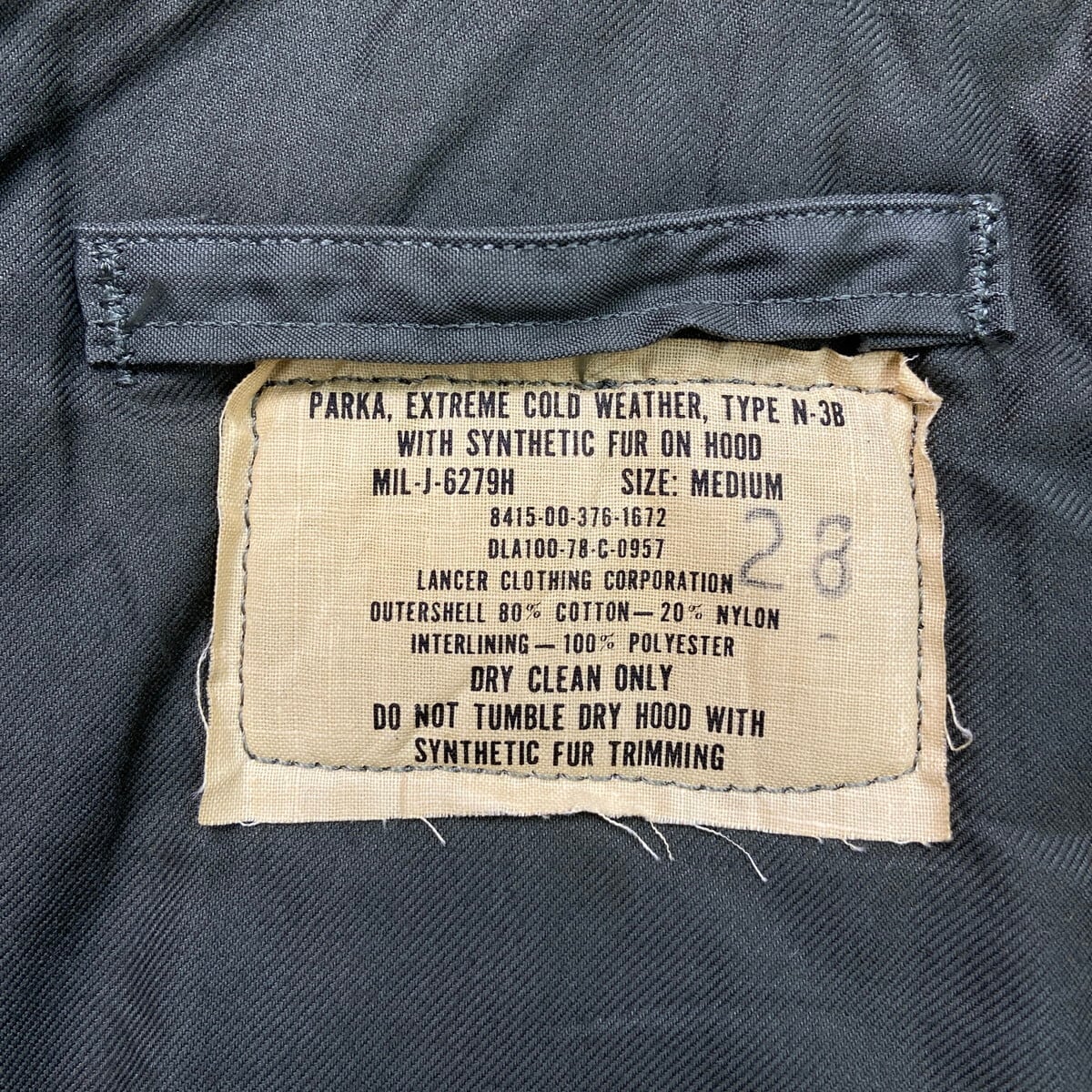 ■古着 USAF U.S.AIR FORCE 米軍実品 N-3B ミリタリー フライトジャケット メンズL相当 78年納品 70s VINTAGE ヴィンテージ USED SCOVILLジップ ライトカーキグリーン【ミリタリージャケット】/カーキグリーン ◎70年代USAF、N-3Bフライトジャケット。 中綿入り、フード部分のボアとファーでミリタリージャケットの中でも特に防寒性抜群なアイテム。 ボリュームのある独特なシルエットが特徴的でバイクウェアなどにも最適です。 【サイズ】表記 MEDIUM(実寸メンズL相当) モデル身長172cm 計測値をご確認ください。 着丈…82 身幅…68.5 裄丈…79.5 袖下…45.5 【素材】表地 コットン80%,ナイロン20% 中綿 ポリエステル100% 【状態】袖やフードトップ付近に薄汚れがございます。 画像にてご確認ください。 【c251215103】 ※古着は洗濯、検品などのケアを行っております。(新品・デッドストックは洗濯していません。) ※モニターの発色により実物と異なる場合がございます。予めご了承ください。 ※ 海外直輸入USED品になります。