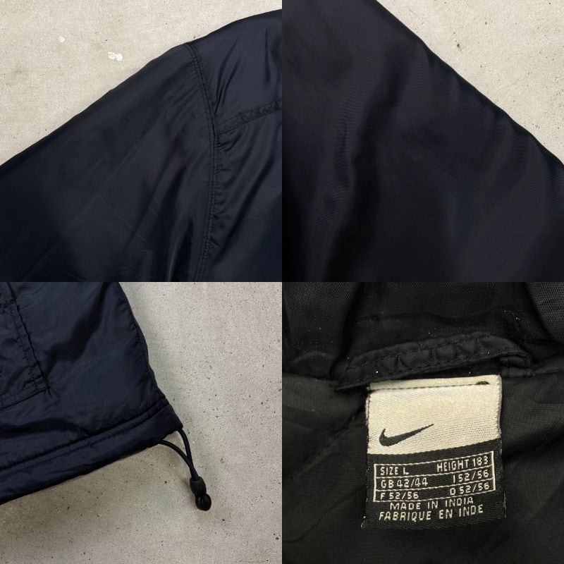 ■古着 NIKE ナイキ ナイロンジャケット メンズXL相当 00年代 00s Y2K VINTAGE ヴィンテージ USED 中綿入り キルティングライナー 裾ドローコード 黒【ナイロンジャケット】/ブラック 【ブランド】NIKE ナイキ 【サイズ】表記 L(実寸メンズXL相当) ※計測値をご確認ください。 着丈…83 身幅…65 肩幅…53 袖丈…67 【生産国】インド製 【素材】ナイロン100% 裏地 ナイロン100% 中綿 ポリエステル100% 【状態】フードが欠品しております。 複数個所に若干のキズや薄汚れがございます。 画像にてご確認ください。 【c251212101】 ※古着は洗濯、検品などのケアを行っております。(新品・デッドストックは洗濯していません。) ※モニターの発色により実物と異なる場合がございます。予めご了承ください。 ※ 海外直輸入USED品になります。
