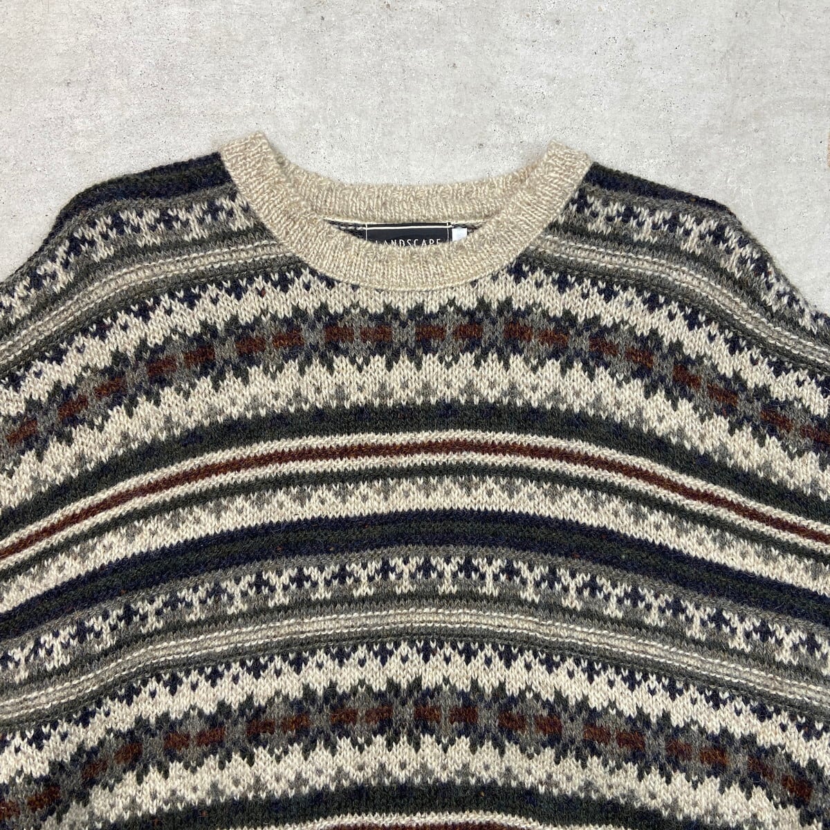 ■古着 LANDSCAPE フェアアイル柄 ウールニットセーター メンズL 90年代 90s VINTAGE ヴィンテージ USA製 USED ベージュ ネイビー グリーン【ニットセーター】/マルチカラー 【ブランド】LANDSCAPE 【サイズ】表記 L ※計測値をご確認ください。 着丈...73 身幅…58 肩幅…62 袖丈...64 【生産国】USA製 【素材】ウール85%、ナイロン15% 【状態】多少の使用感はございますが目立った汚れやダメージは御座いません。 画像にてご確認ください。 【c251209112】 ※古着は洗濯、検品などのケアを行っております。(新品・デッドストックは洗濯していません。) ※モニターの発色により実物と異なる場合がございます。予めご了承ください。 ※ 海外直輸入USED品になります。