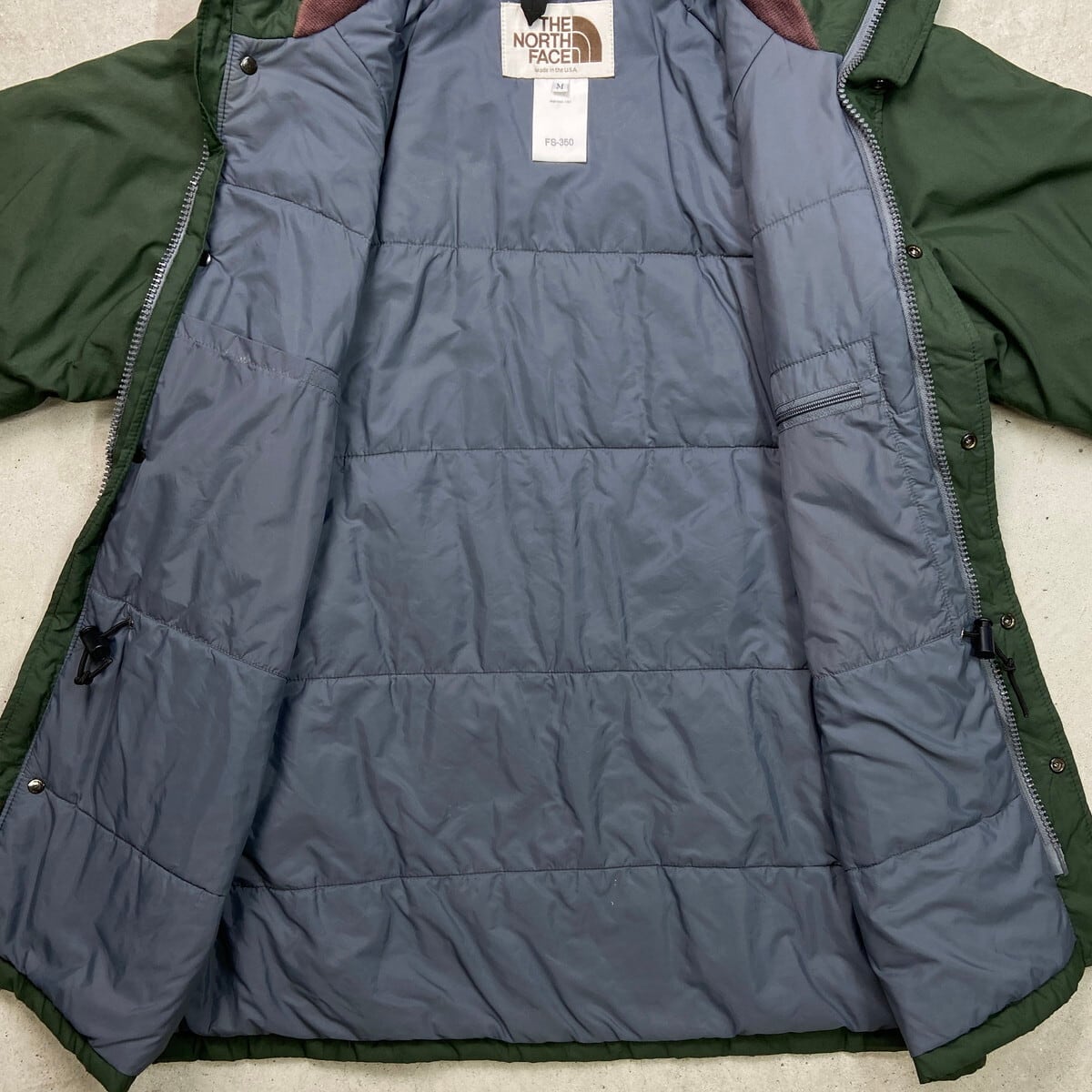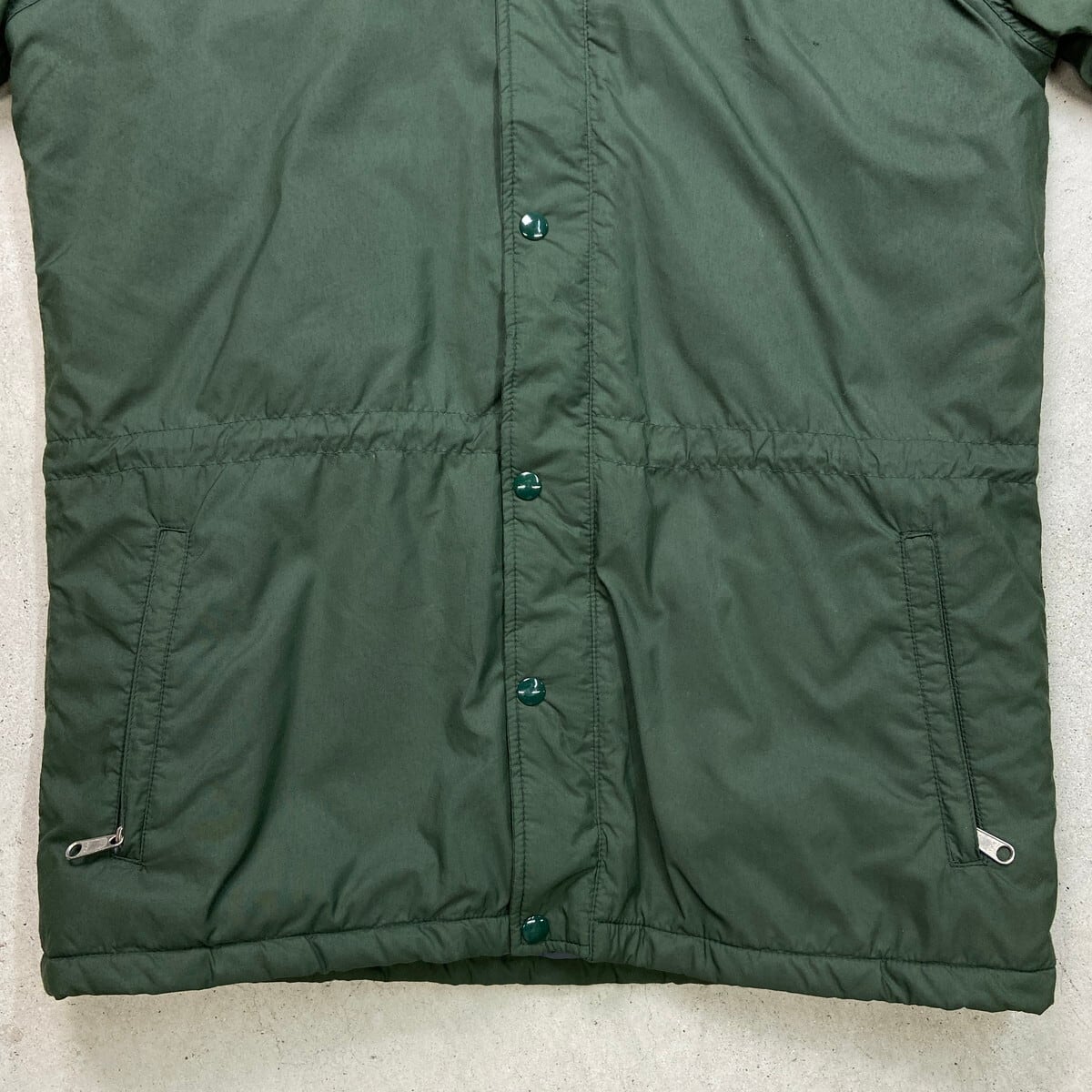 ■古着 THE NORTH FACE ザノースフェイス マウンテンパーカー メンズL相当 80年代 80s USA製 VINTAGE ヴィンテージ USED 中綿入り ナイロンジャケット ダブルジッパー ラグランスリーブ【アウトドアジャケット】/グリーン 【ブランド】THE NORTH FACE ザ ノースフェイス 【サイズ】表記 MENS M モデル身長172cm ※計測値をご確認ください。 着丈…77 身幅…60 裄丈…80 袖丈(脇下計測)…56 【生産国】USA製 【素材】ナイロン100% 中綿 オレフィン65%、ポリエステル35% 【状態】フードが欠品しております。 フロントに一部薄汚れがありますが、その他目立ったダメージはございません。 画像にてご確認ください。 【c251209102】 ※古着は洗濯、検品などのケアを行っております。(新品・デッドストックは洗濯していません。) ※モニターの発色により実物と異なる場合がございます。予めご了承ください。 ※ 海外直輸入USED品になります。