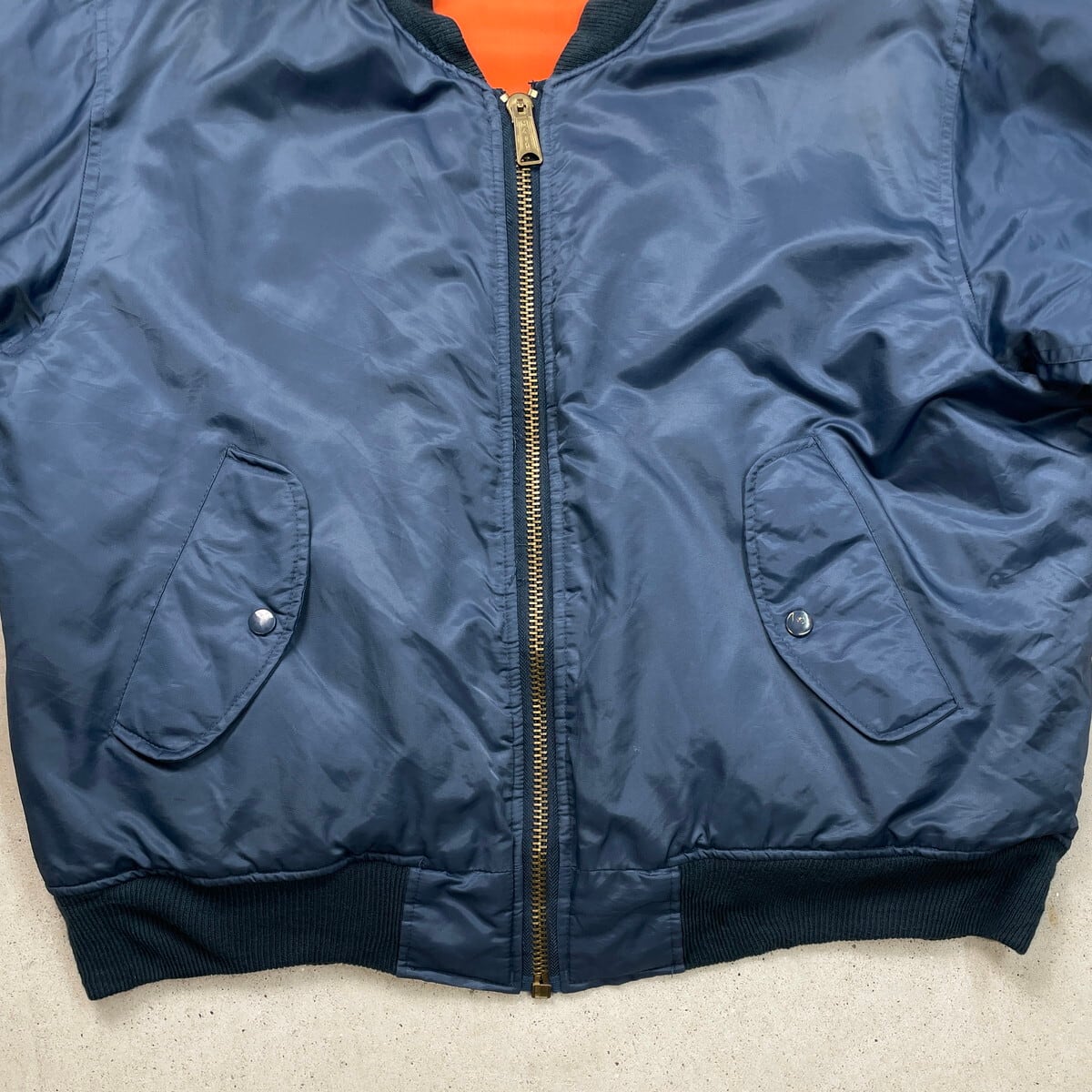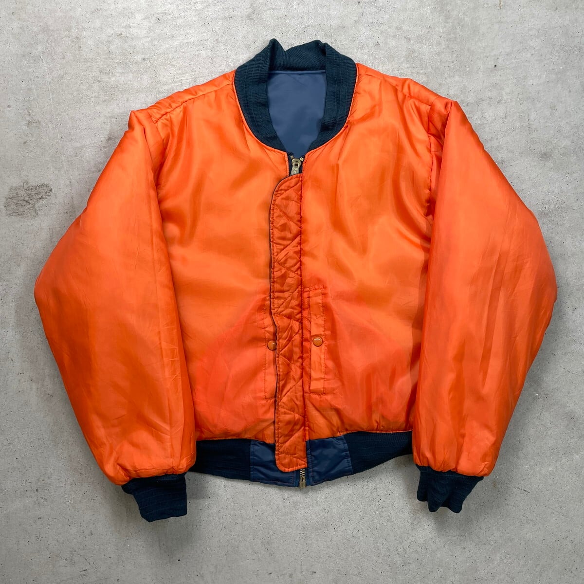 ■古着 ROTHCO ロスコ MA-1タイプ フライトジャケット メンズL相当 USED ミリタリー リバーシブル HIP-HOP ヒップホップ 紺色 オレンジ【ミリタリージャケット】/ネイビー 【サイズ】表記 S (着用感メンズL相当) モデル身長172cm 計測値をご確認ください。 着丈…61 身幅…64.5 肩幅…51 袖丈…61.5 【生産国】表記不明 【素材】表記不明(おそらくナイロンかと思われます。) 【状態】フロント右肩付近に変色した部分があります。 その他目立ったダメージはございません。 画像にてご確認ください。 【c251208108】 ※古着は洗濯、検品などのケアを行っております。(新品・デッドストックは洗濯していません。) ※モニターの発色により実物と異なる場合がございます。予めご了承ください。 ※ 海外直輸入USED品になります。
