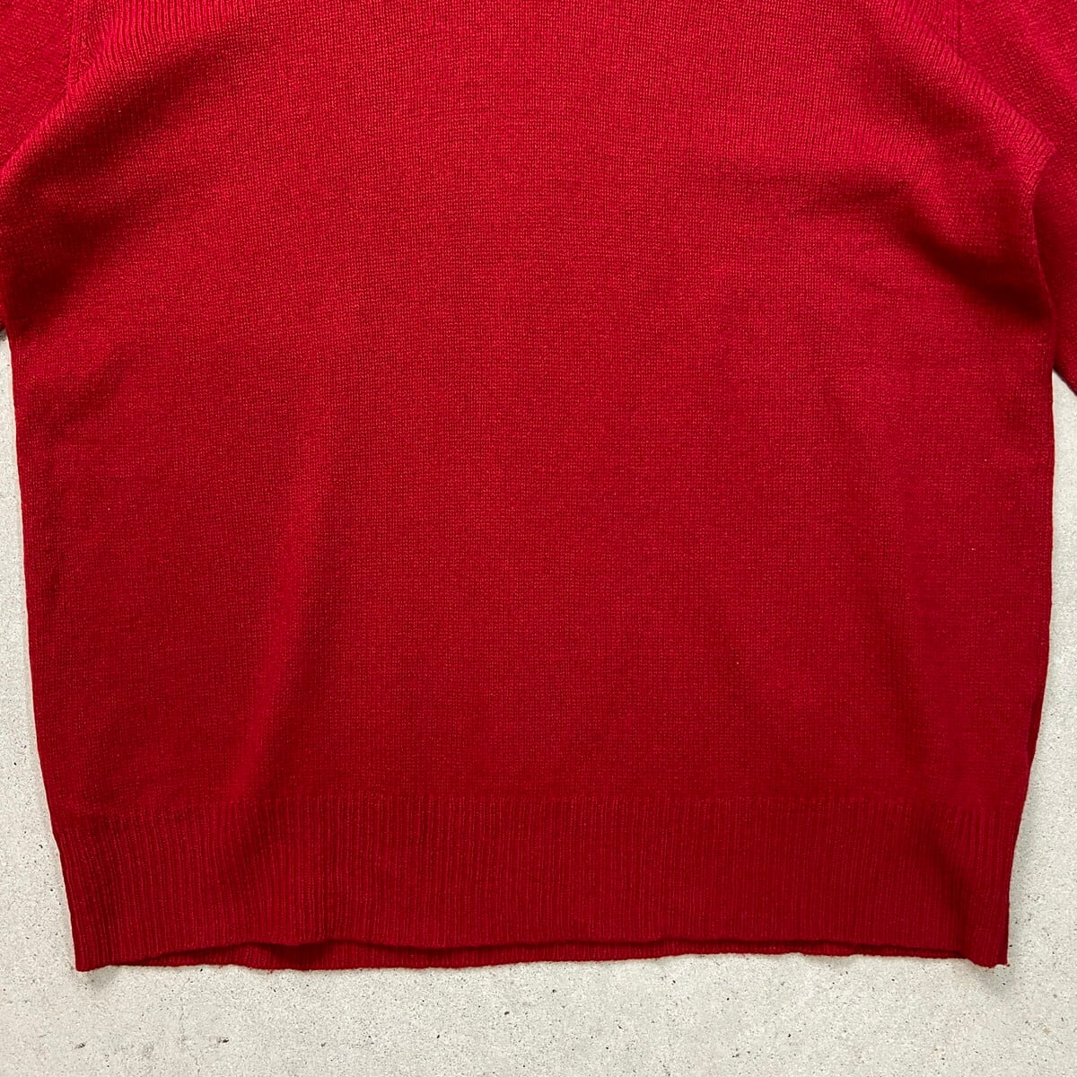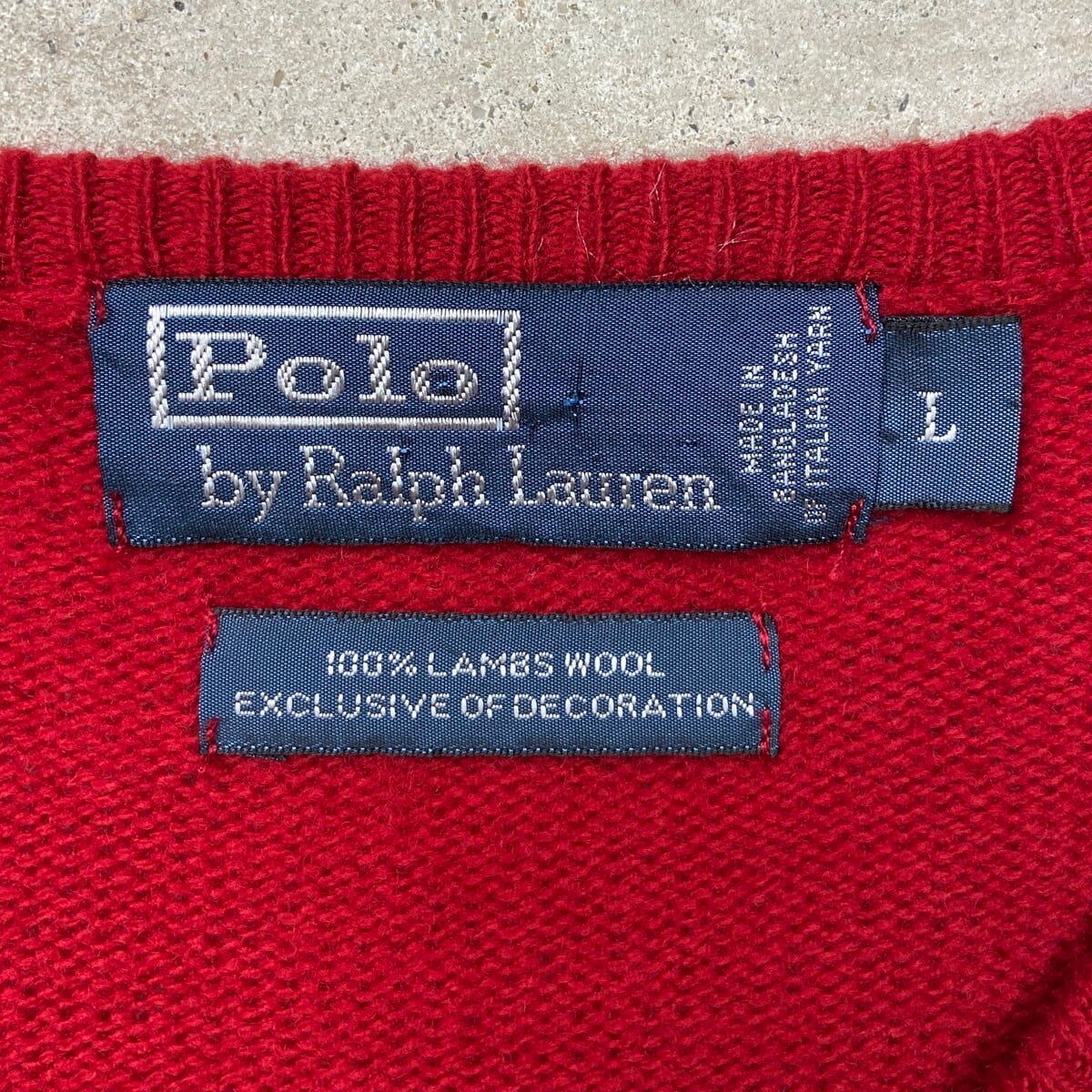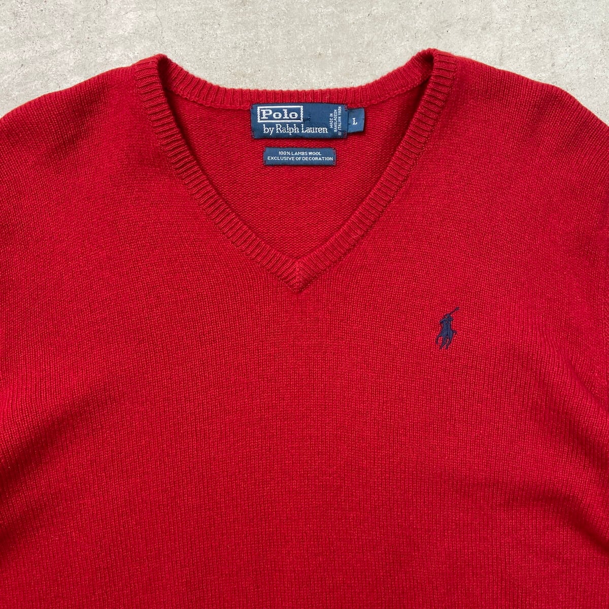 ■古着 Polo by Ralph Lauren ポロバイラルフローレン Vネック ラムウールニットセーター メンズL 90年代 90s VINTAGE ヴィンテージ USED ワンポイントロゴ刺繍【ニットセーター】/レッド 【ブランド】 Polo by Ralph Lauren ポロバイラルフローレン 【サイズ】表記 L ※計測値をご確認ください。 着丈…65 身幅…57.5 肩幅…50 袖丈…68 【生産国】バングラデッシュ製 【素材】ラムウール100% 【状態】多少の毛玉感、使用感ございますが目立った汚れはなくまだまだ愛用していただけます。 画像にてご確認ください。 【c251208106】 ※古着は洗濯、検品などのケアを行っております。(新品・デッドストックは洗濯していません。) ※モニターの発色により実物と異なる場合がございます。予めご了承ください。 ※ 海外直輸入USED品になります。