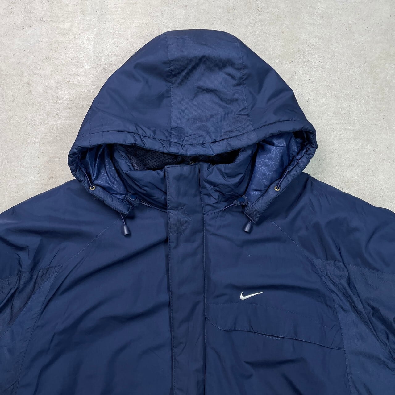 ■古着 NIKE ナイキ スウォッシュロゴ刺繍 ナイロンジャケット メンズXL 00年代 00s VINTAGE ヴィンテージ USED フード着脱式 中綿入り 裾ドローコード 紺色【ナイロンジャケット】/ネイビー 【ブランド】NIKE ナイキ 【サイズ】表記 XL モデル身長172cm ※計測値をご確認ください。 着丈…82 身幅…68 裄丈…92 袖丈(脇下計測)…55 【生産国】中国製 【素材】不明 おそらくナイロンかと思われます。 【状態】 フロントに生地擦れがございます。 画像にてご確認ください。 【c251207008】 ※古着は洗濯、検品などのケアを行っております。(新品・デッドストックは洗濯していません。) ※モニターの発色により実物と異なる場合がございます。予めご了承ください。 ※ 海外直輸入USED品になります。