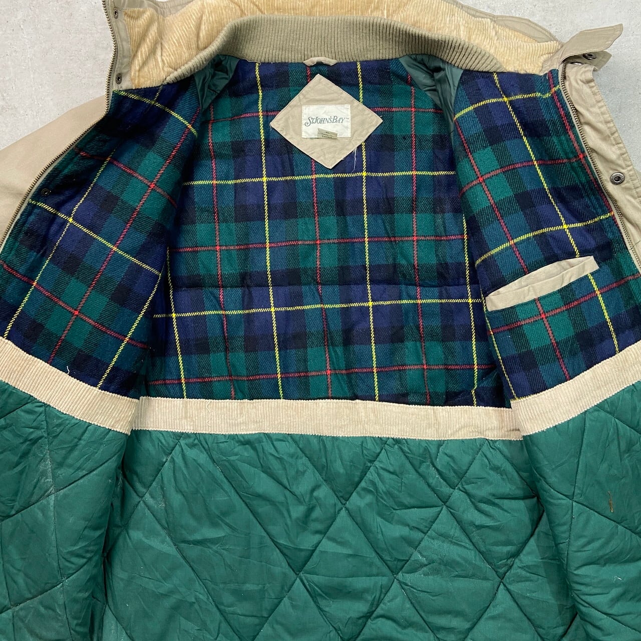 ■古着 STJOHN'S BAY セントジョーンズベイ マウンテンジャケット メンズXL 90年代 90s VINTAGE ヴィンテージ USED アウトドア アメカジ 中綿入り チェックネルライナー【アウトドアジャケット】/ベージュ 【ブランド】STJOHN'S BAY セントジョーンズベイ 【サイズ】表記 XL モデル身長172cm ※計測値をご確認ください。 着丈…89 身幅…68 裄丈…91 袖丈(脇下計測)…53y 【生産国】中国製 【素材】ポリエステル65% コットン35% 裏地 アクリル100% 中綿 ポリエステル100% 【状態】フード欠品、フロント右裾ポケットや右袖に汚れがございます。 画像にてご確認ください。 【c251207005】 ※古着は洗濯、検品などのケアを行っております。(新品・デッドストックは洗濯していません。) ※モニターの発色により実物と異なる場合がございます。予めご了承ください。 ※ 海外直輸入USED品になります。