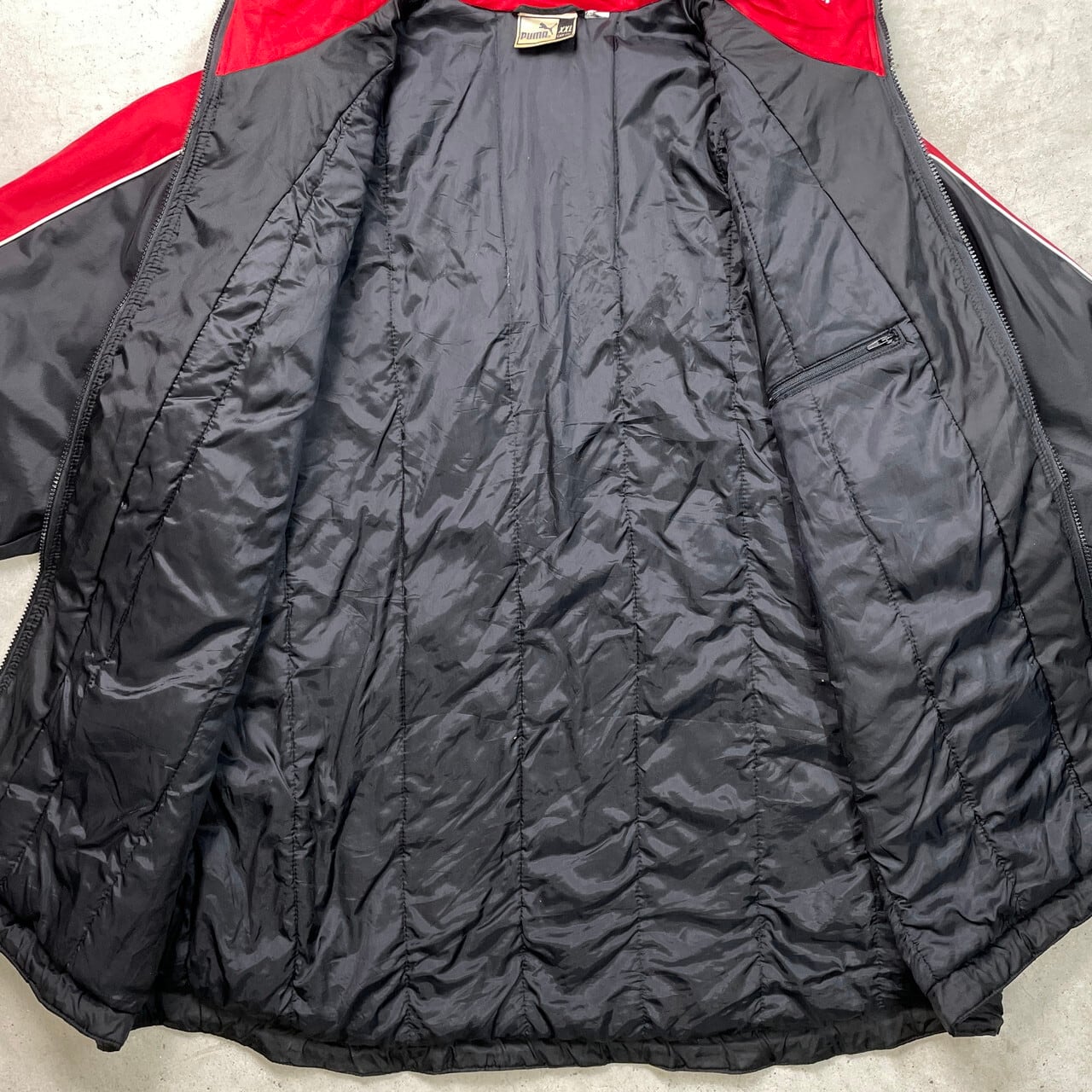 ■古着 PUMA プーマ ナイロンジャケット メンズ2XL 90年代 90s VINTAGE ヴィンテージ USED 中綿入り ビッグサイズ 大きいサイズ レッド 黒 赤【ナイロンジャケット】/ブラック 【ブランド】puma プーマ 【サイズ】表記 XXL ※計測値をご確認ください。 着丈…85.5 身幅…72 肩幅…64 袖丈…55 【生産国】不明 【素材】不明 おそらくポリエステルかと思われます 【状態】 多少の使用感はございますが、 目立った汚れやダメージ等は無くまだまだ長くご愛用していただけます。 画像にてご確認ください。 【c251207002】 ※古着は洗濯、検品などのケアを行っております。(新品・デッドストックは洗濯していません。) ※モニターの発色により実物と異なる場合がございます。予めご了承ください。 ※ 海外直輸入USED品になります。