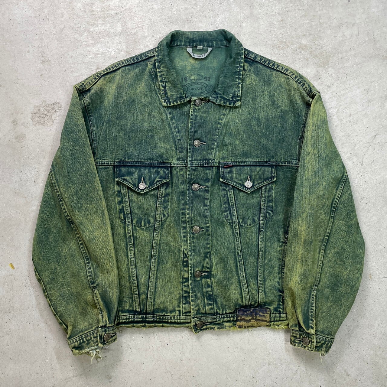 ■古着 BIG WIT カラーデニムジャケット メンズXL相当 USED トラッカージャケット 襤褸 ボロ フェードグリーン 緑【デニムジャケット】/グリーン 【ブランド】 BIG WIT 【サイズ】表記 52(着用感メンズXL相当) ※計測値をご確認ください。 着丈…65 身幅…65 肩幅…59 袖丈…59 【生産国】不明 【素材】不明 おそらくコットンかと思われます。 【状態】袖口・裾・襟先などに生地擦れがございます。 画像にてご確認ください。 【c251206004】 ※古着は洗濯、検品などのケアを行っております。(新品・デッドストックは洗濯していません。) ※モニターの発色により実物と異なる場合がございます。予めご了承ください。 ※ 海外直輸入USED品になります。