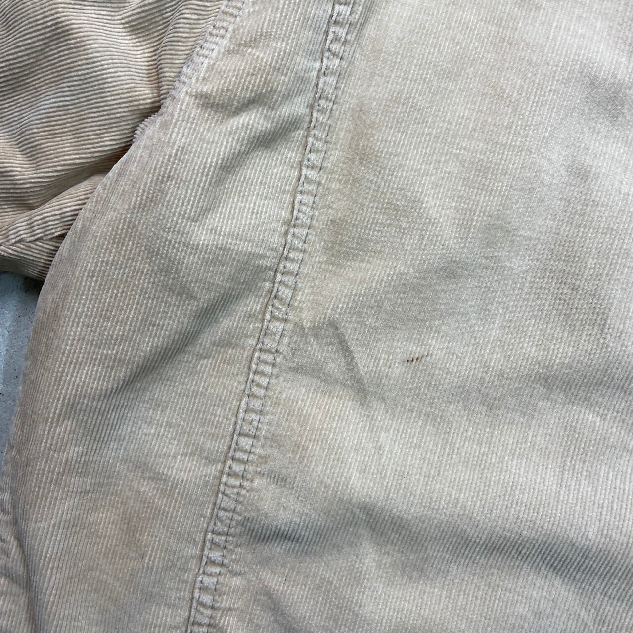■90年代 Lee RIDERS リー ライダース PATD-153436 コーデュロイジャケット メンズM 古着 90s ヴィンテージ VINTAGE トラッカージャケット キルティングライナー【コットンジャケット】/ベージュ 【ブランド】Lee RIDERS リー ライダース 【サイズ】表記 M モデル身長172cm 計測値をご確認ください。 着丈…63 身幅…58 肩幅…50 袖丈…64 【生産国】不明 【素材】コットン100% 【状態】フロント・バック・両袖などに汚れがございます。 画像にてご確認ください。 【c251204011】 ※古着は洗濯、検品などのケアを行っております。(新品・デッドストックは洗濯していません。) ※モニターの発色により実物と異なる場合がございます。予めご了承ください。 ※ 海外直輸入USED品になります。