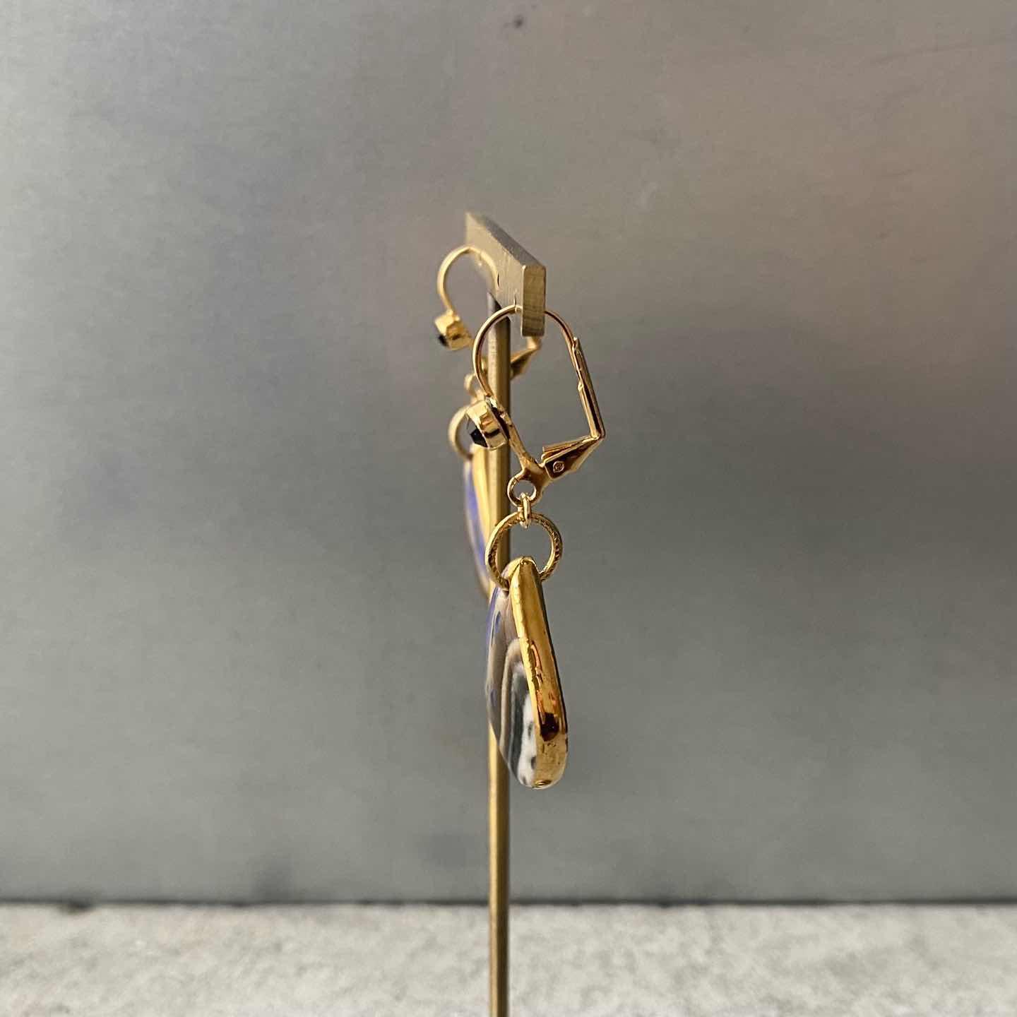 個性的な模様のストーンが揺れ動くUSAヴィンテージピアス。スタイリングにお洒落な雰囲気をプラスしてくれます。 □Materials メタル(ゴールドメッキ)、イミテーションストーン、ガラスストーン □Size 約H4.8×W1.7㎝ 7g □Condition【B】 メタル部分にやや変色やストーンには多少のスレがみられます。中古品であることをご理解のうえお買い求めください。ご購入前に必ずショッピングガイドのご確認をお願いいたします。 【S】未使用 【A】未使用に近い 【B】やや使用感あり 【C】使用感あり Item No.3560