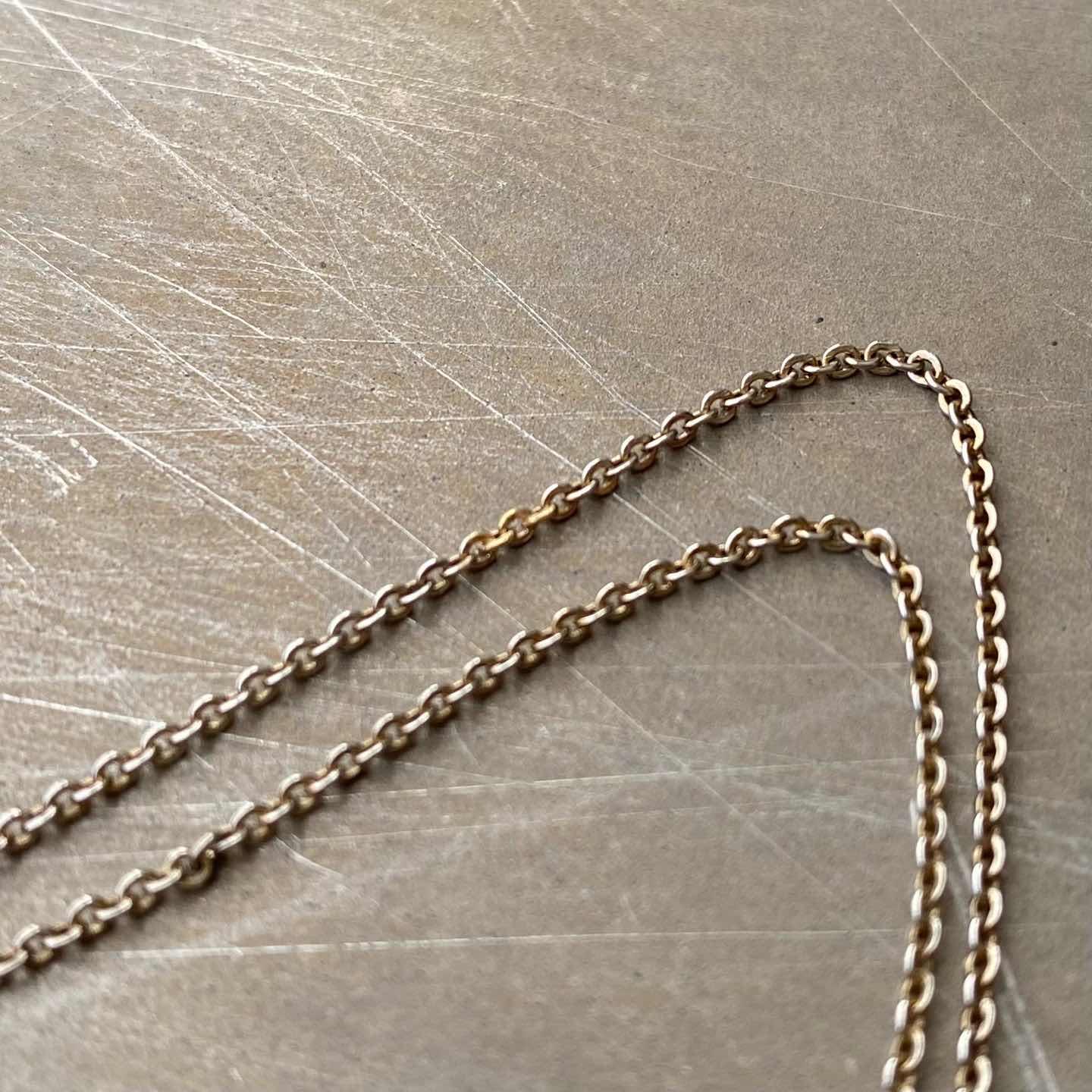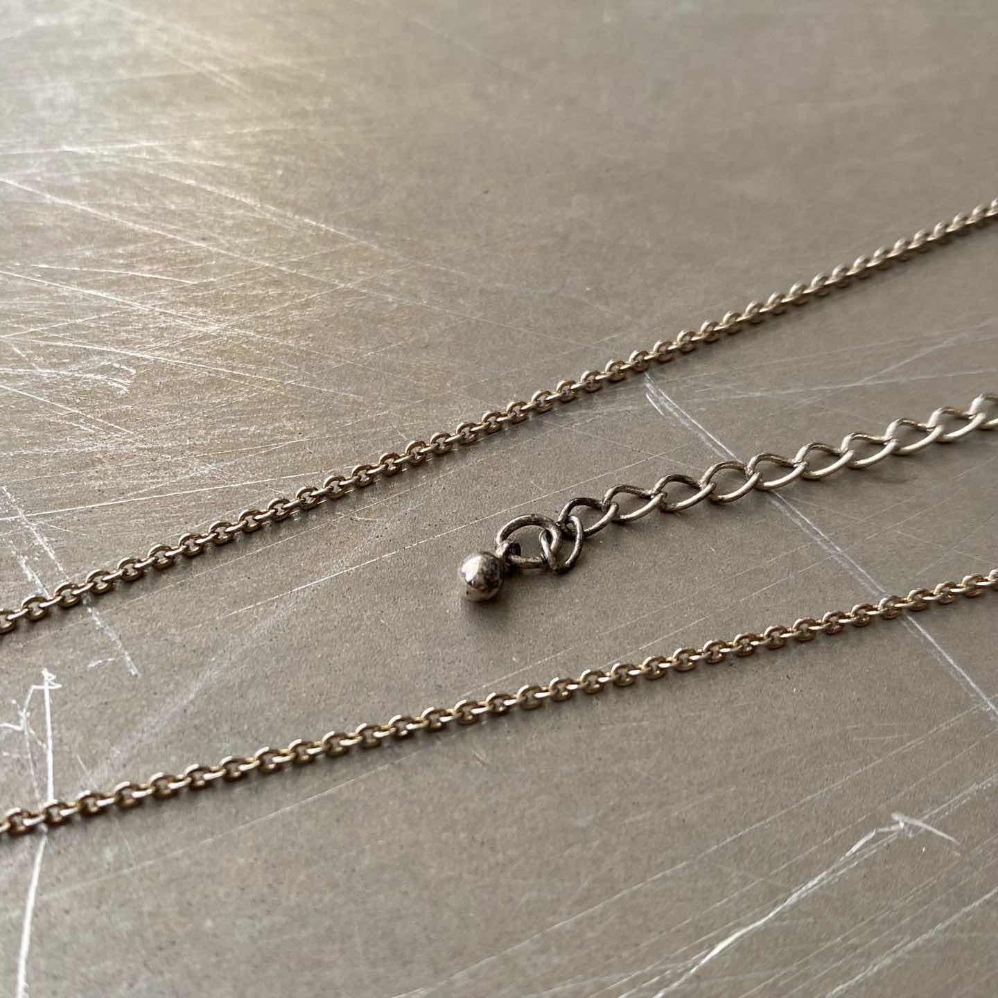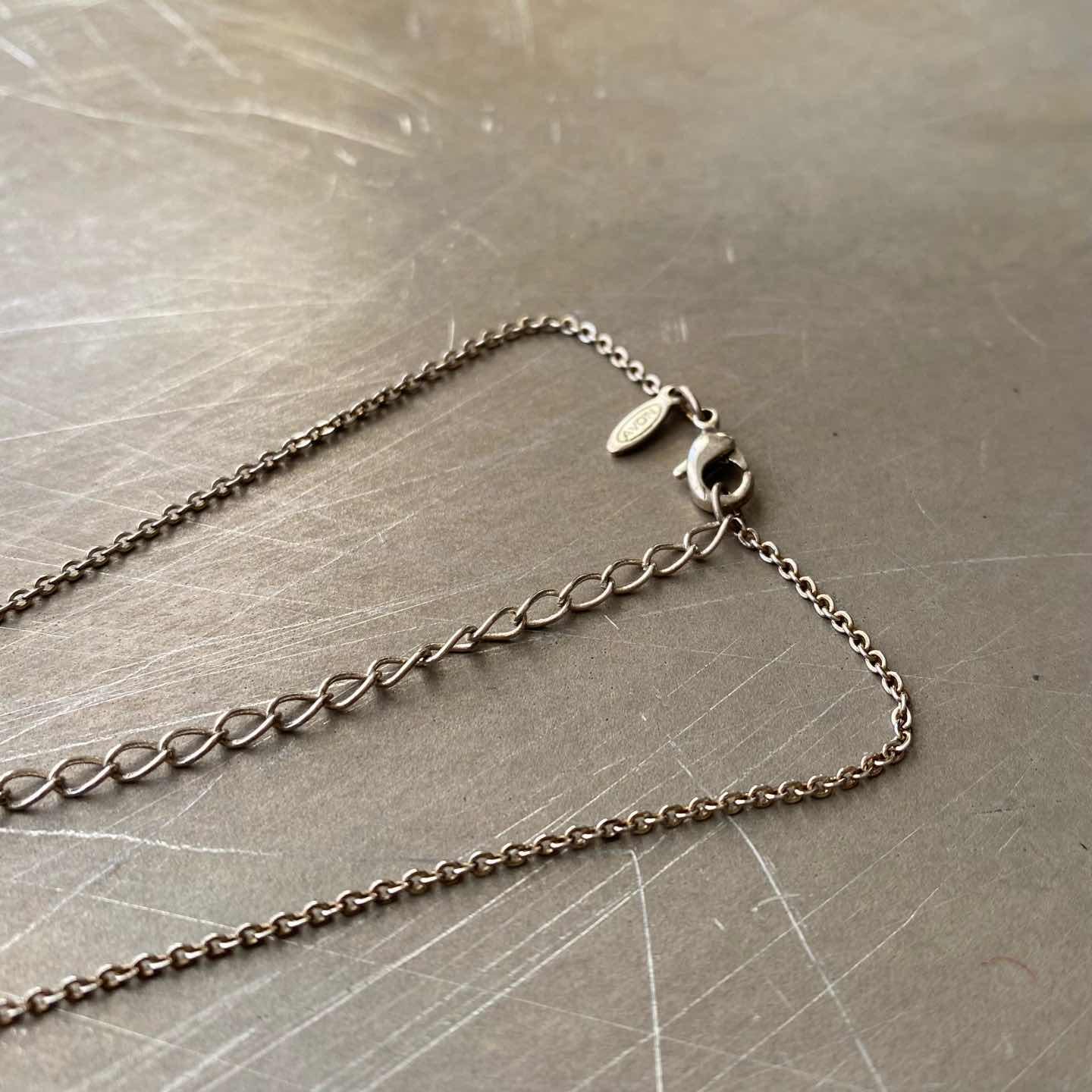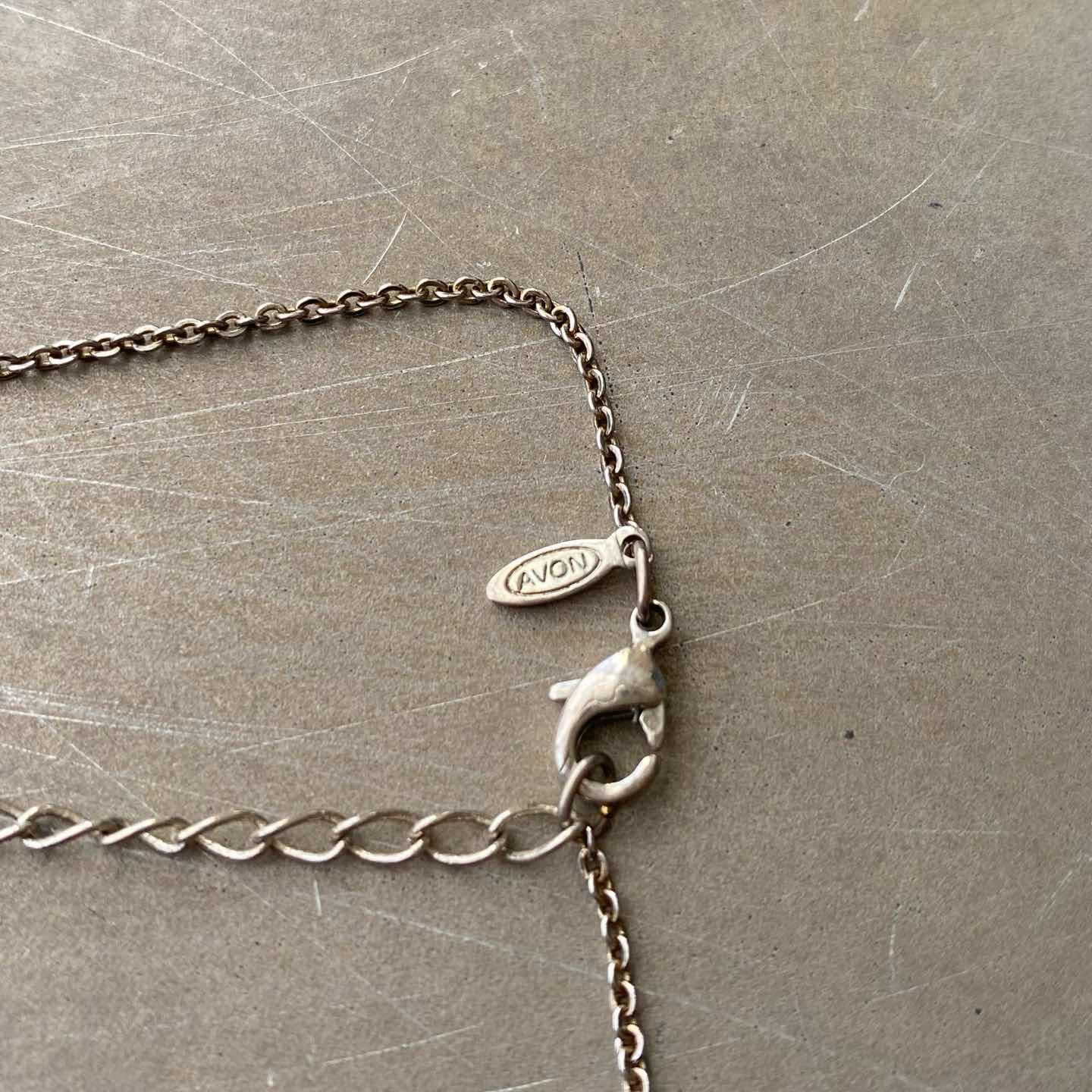1886年にNYで香水会社として創業し、1971年よりコスチュームジュエリーの制作を始めたブランド「AVON」のUSAヴィンテージネックレス。ストーンが美しく輝くシンプルながらエレガントなデザインです。 □Materials メタル(ゴールドメッキ)、イミテーションストーン □Size 全長 約37㎝+アジャスター8㎝ ストーン直径 約8㎜ 4g □Brand AVON(エイボン) 刻印入り □Condition【C】 経年によるメッキ変色や色ムラがみられます。古びた雰囲気がお好きな方におすすめです。中古品であることをご理解のうえお買い求めください。ご購入前に必ずショッピングガイドのご確認をお願いいたします。 【S】未使用 【A】未使用に近い 【B】やや使用感あり 【C】使用感あり Item No.3569