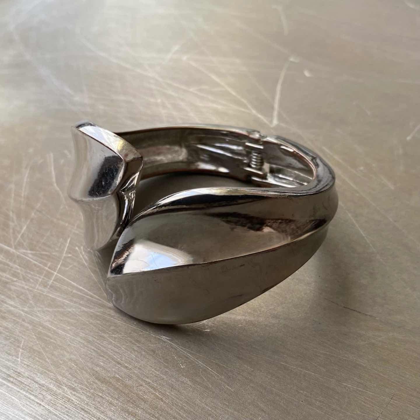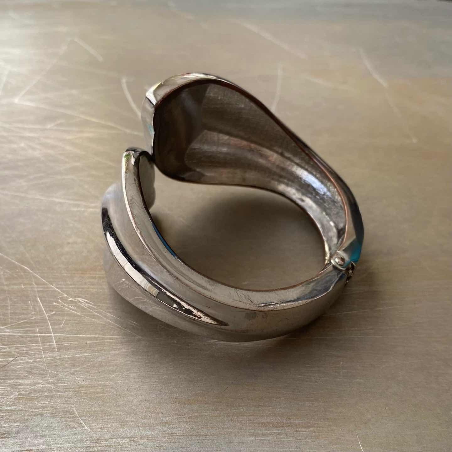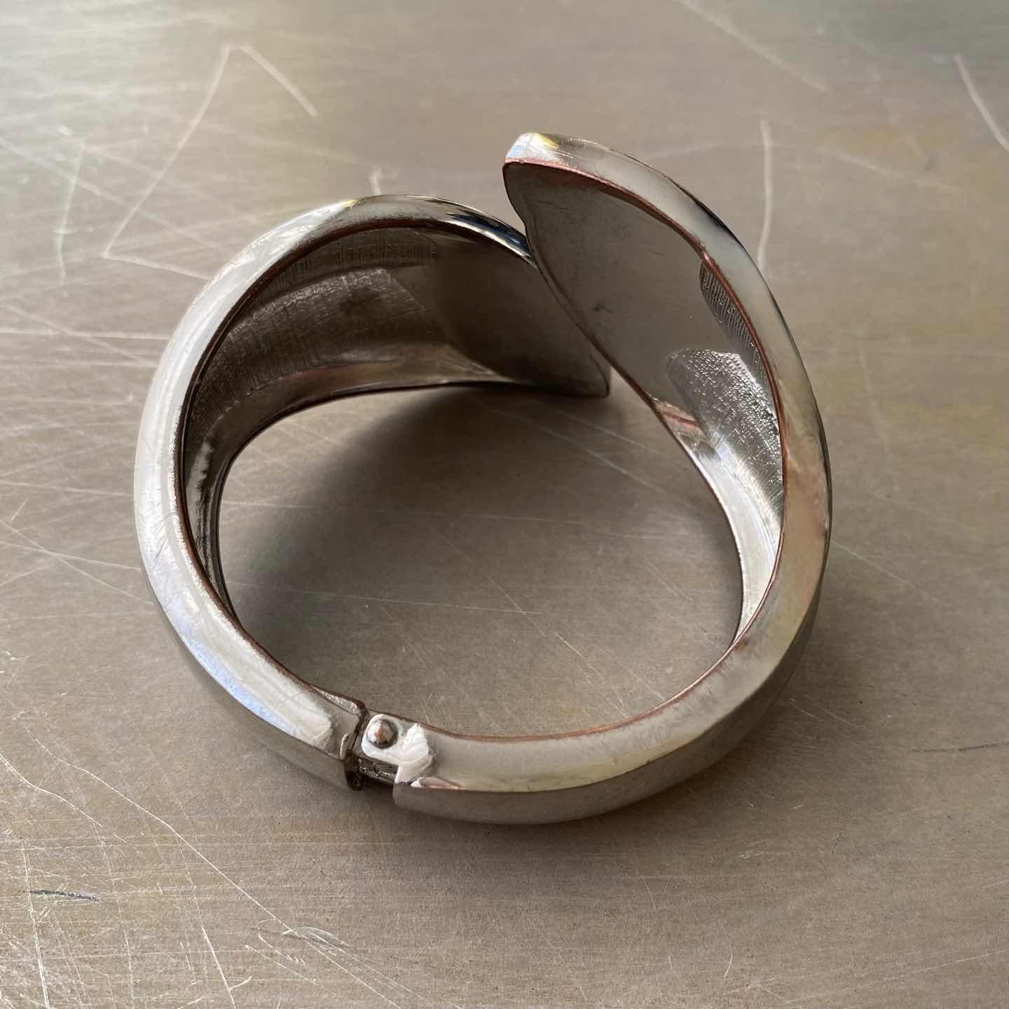 レトロモードな雰囲気のUSAヴィンテージバングル。シルバーカラーの重厚感のあるお洒落なデザインで、中央部分が開閉する作りです。存在感のある幅広タイプでコーディネートのアクセントに。古着やユニセックスなスタイルにもおすすめです。 □Materials メタル(シルバーメッキ) □Size 内周 約18.5㎝ 幅 約4.6㎝ 75g □Condition【C】 メッキ変色や剥がれ、全体的にスレ傷がみられます。古びた雰囲気がお好な方におすすめです。中古品であることをご理解のうえお買い求めください。ご購入前にも必ずショッピングガイドのご確認をお願いいたします。 【S】未使用 【A】未使用に近い 【B】やや使用感あり 【C】使用感あり Item No.3573