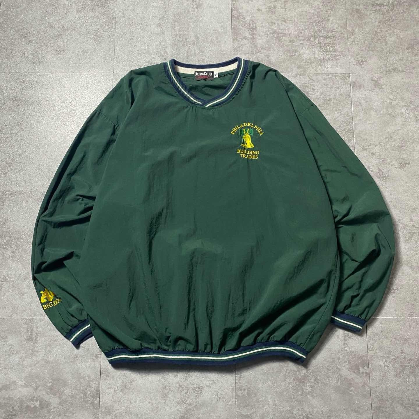 【USA製】90's ULTRA CLUB 刺繍企業ロゴ グリーン ナイロンプルオーバー