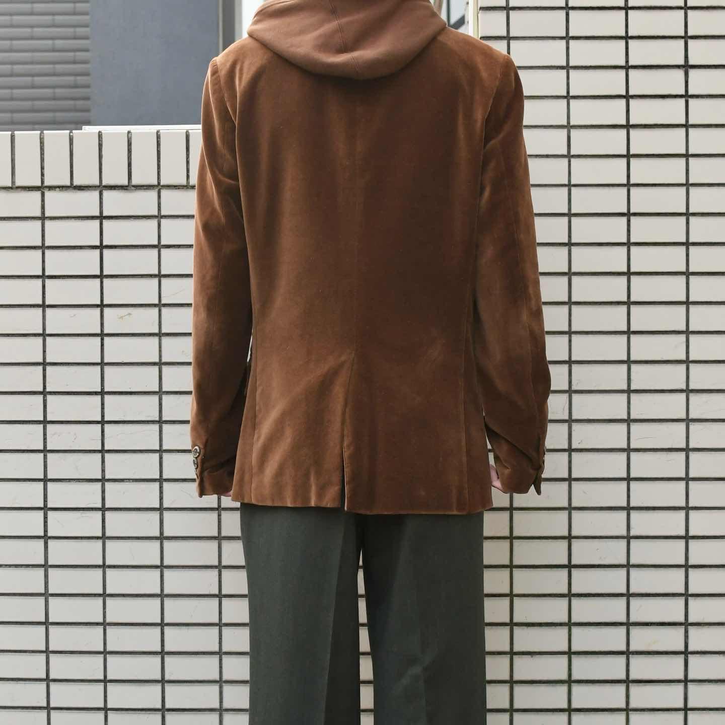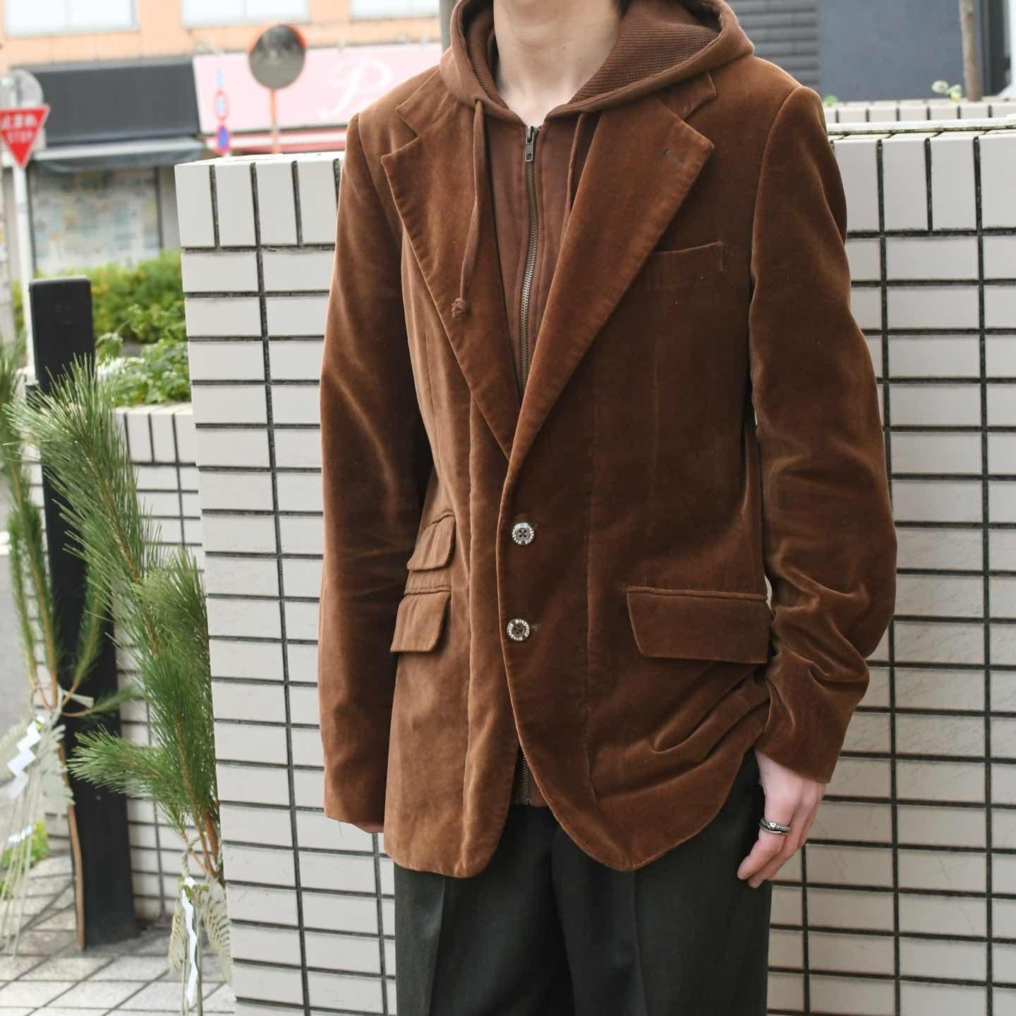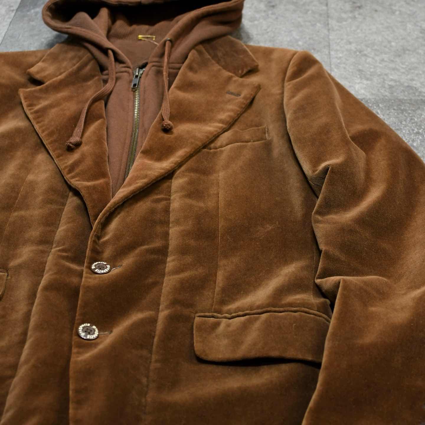 古着 レイヤード ベロア テーラードジャケット 裏地サーマル フーディ ブラウン