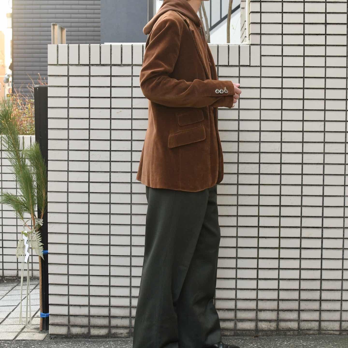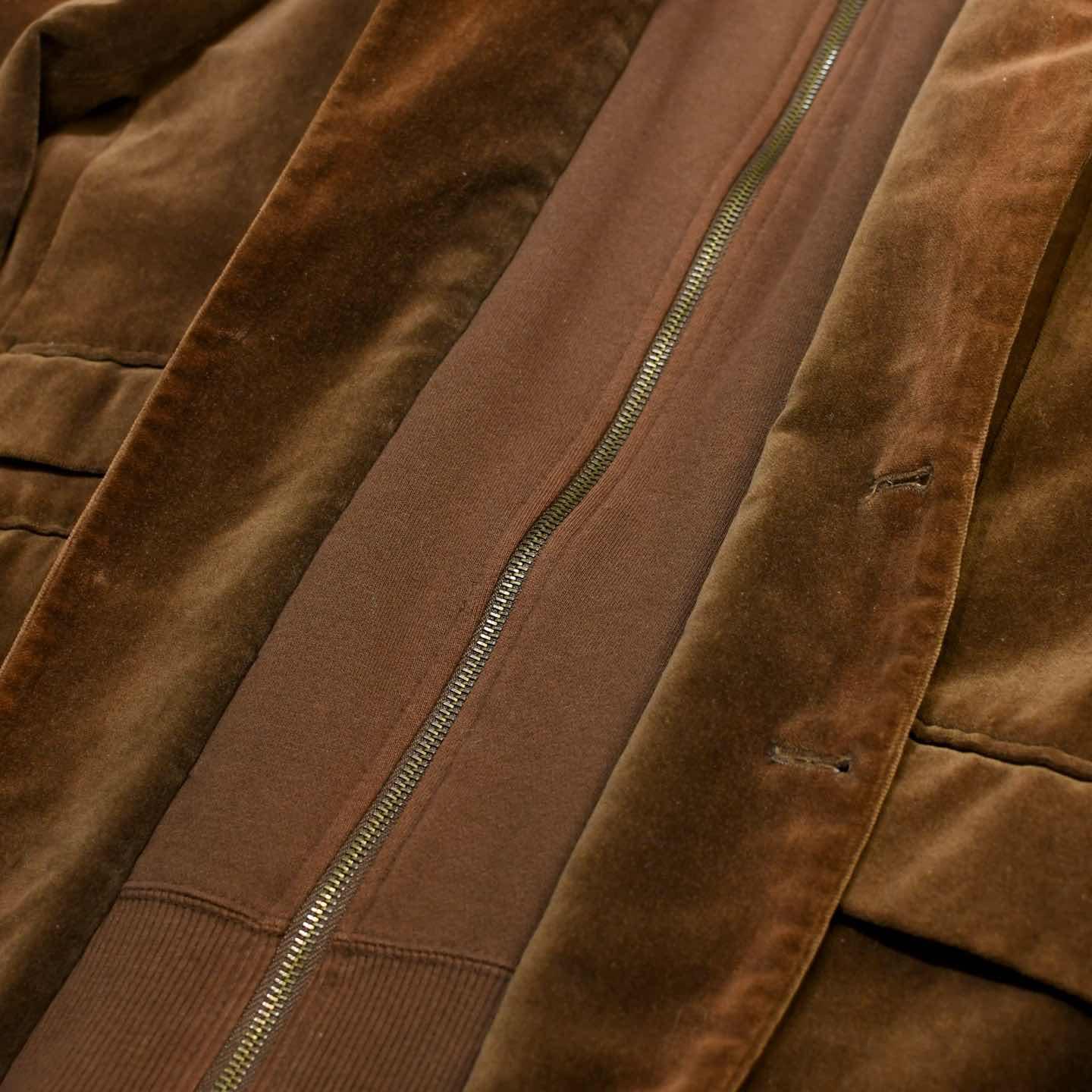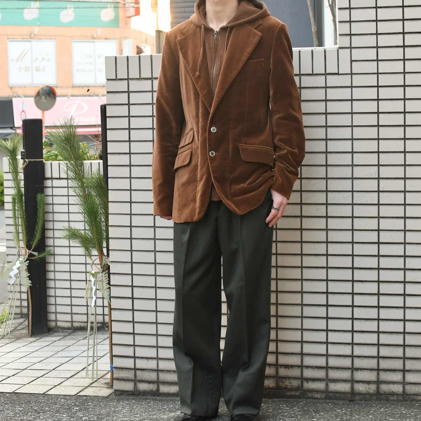古着 レイヤード ベロア テーラードジャケット 裏地サーマル フーディ ブラウン