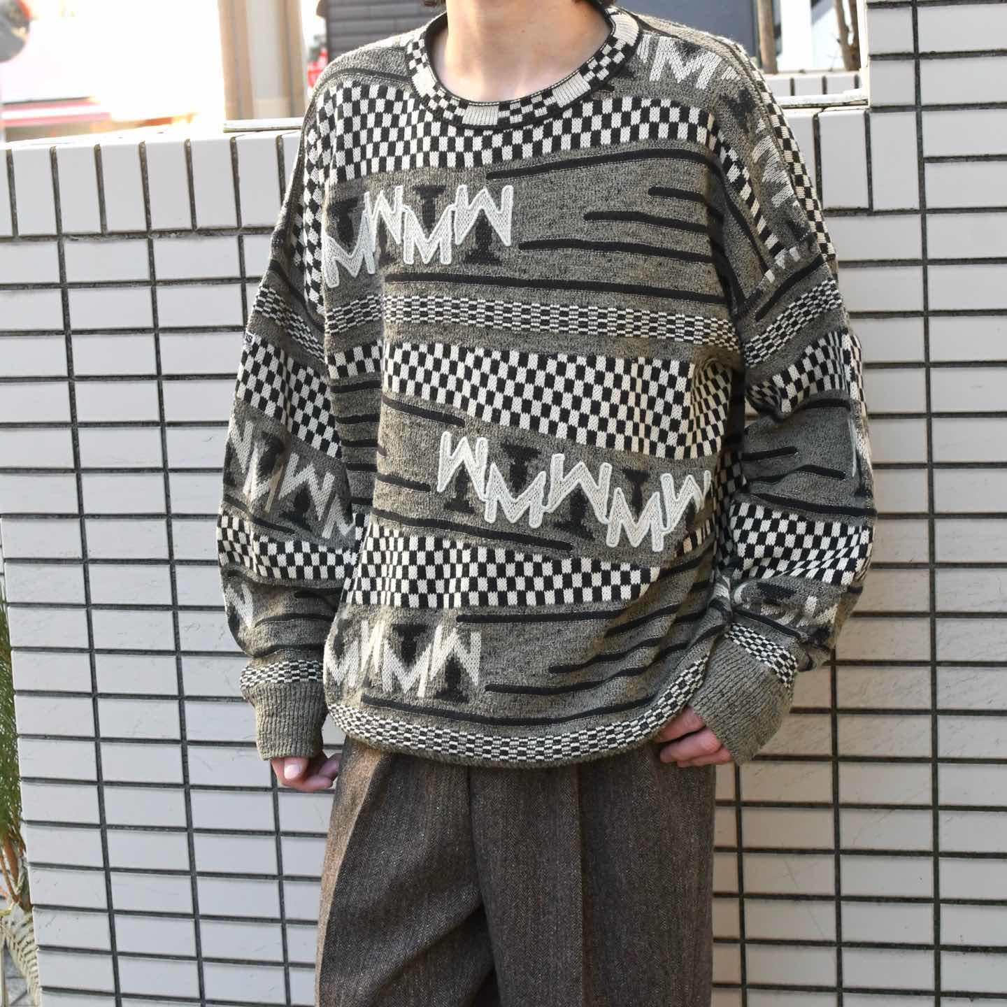 古着 HUGO BOSS デザインニット ニット セーター アクリルニット