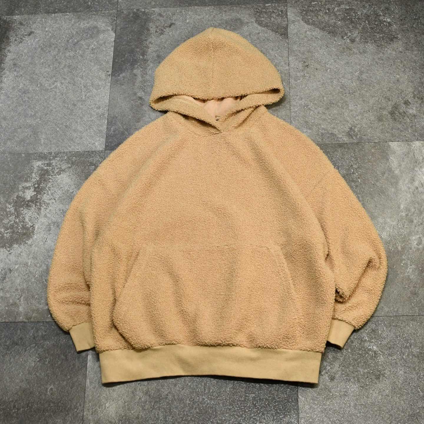 古着 ボア フーディ パーカー プルオーバー ベージュ