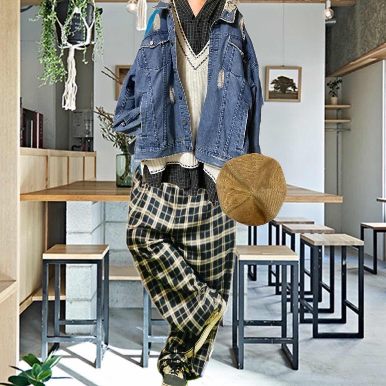 00s ヴィンテージリメイクデニムパッチ、アートボトム S-L対応