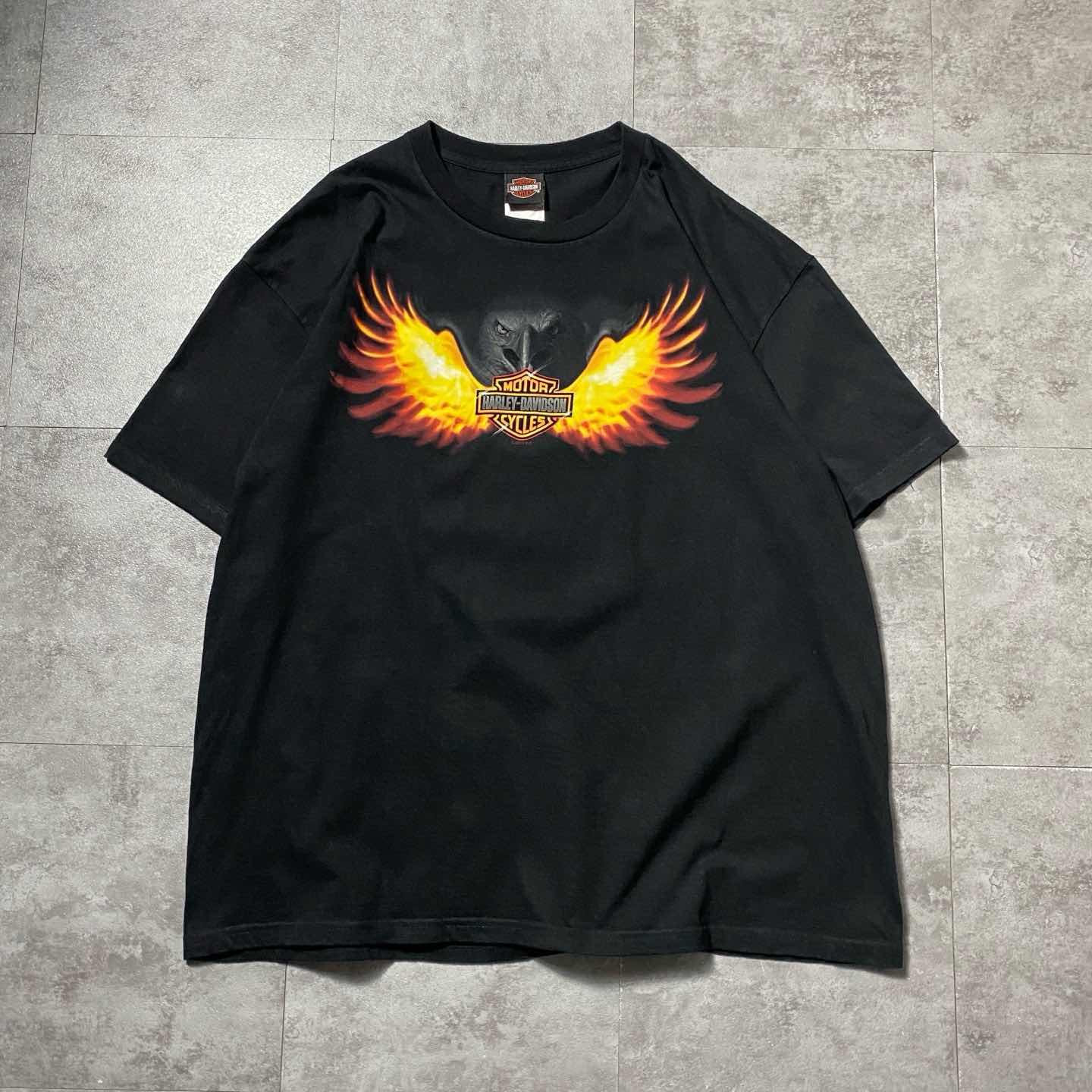 【USA製】ハーレーダビッドソン フレイムイーグル 両面プリント Tシャツ