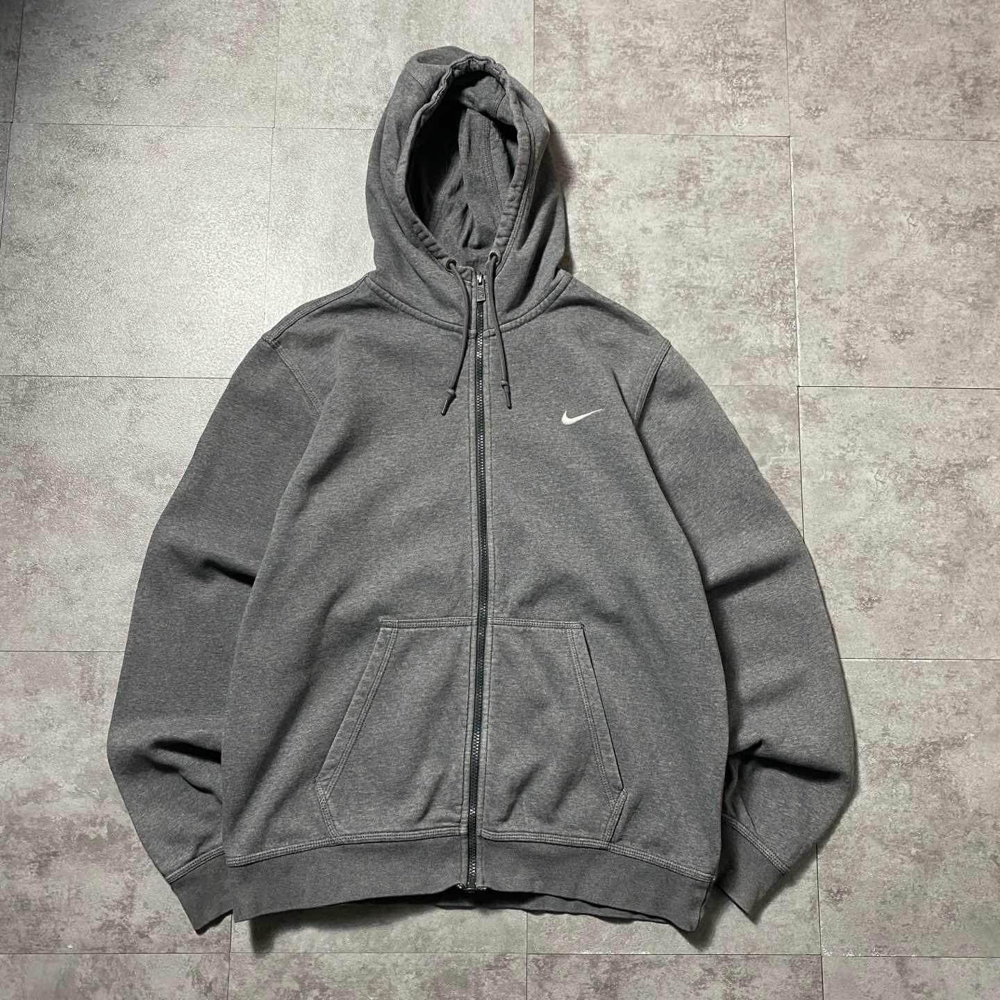 【XXL】00's NIKE スウォッシュ 刺繍ワンポイント ジップパーカー