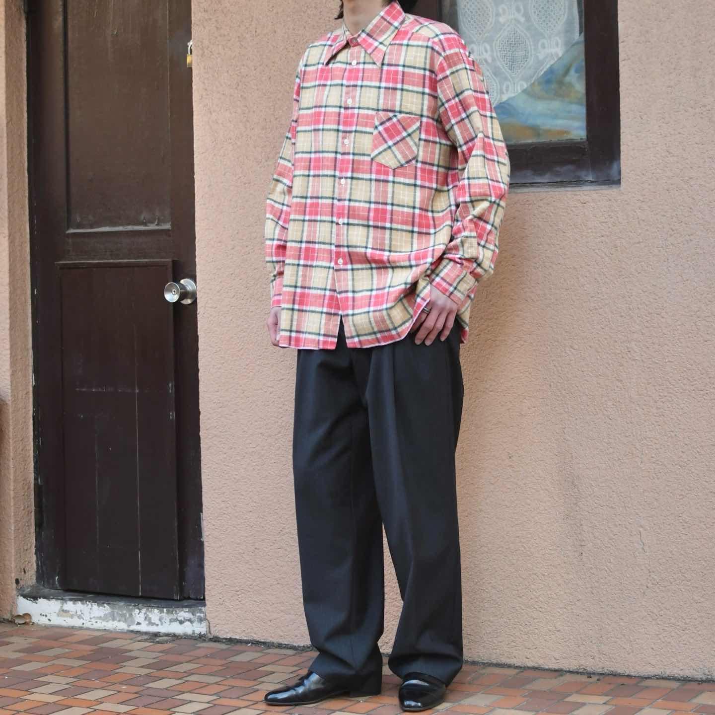SIZE:41 着丈75cm 肩幅46cm 身幅62cm 袖丈59cm fabric/質感よりcotton 着用画像 173cm/58kg シャモアのような生地に毛羽立ちのある ふわっとした質感と着心地を味わえる チェックシャツ。 程よく年代を感じることが出来る襟の形や 個性ある色使いに惹かれました。 裾はかがり縫いで、折り返し無し。 元々はタックイン想定で仕立てられた1着でしょうか。 チェックシャツと聞いて想像する色使いから 少し外れたこんなチェックシャツこそ、 固定概念も無く好きなアイテムと好きなコーデに 落とし込みやすいアイテムとして 活躍するのではないでしょうか。 ※色味に関しては物撮りを参考に お願いいたします。 ※撮影状況により、実物と多少色が異なる場合が ございます。 ※古着を取り扱っているため、気づかない汚れや ほつれ等がある場合がございます。 ※サイズは着用感で選んでおり、 表記サイズは説明欄の最初に記載しております。 old vintage ヴィンテージ used 80's 90's アメリカ古着 ユーロ古着 POLO RALPH LAUREN Eddie Bauer OLD GAP LANDS' END ランズエンド LLBean エルエルビーン オールドギャップ エディーバウアー ラルフローレン ブルックスブラザーズ Brooks Brothers ベージュ ピンク などがお好きな方 #vintage #old #used #90s #80s #古着 #ヴィンテージ #LLBean #エルエルビーン #EddieBauer #エディーバウアー #oldgap #オールドギャップ #LANDSEND #ランズエンド #NAUTICA #ノーティカ #ラルフローレン #POLORALPHLAUREN #ブルックスブラザーズ #BrooksBrothers #ネルシャツ #フランネルシャツ #チェックシャツ
