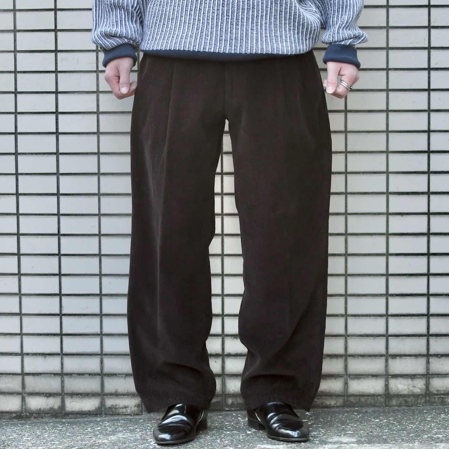 古着 ダークブラウン 焦げ茶 コーデュロイパンツ タックパンツ スラックス