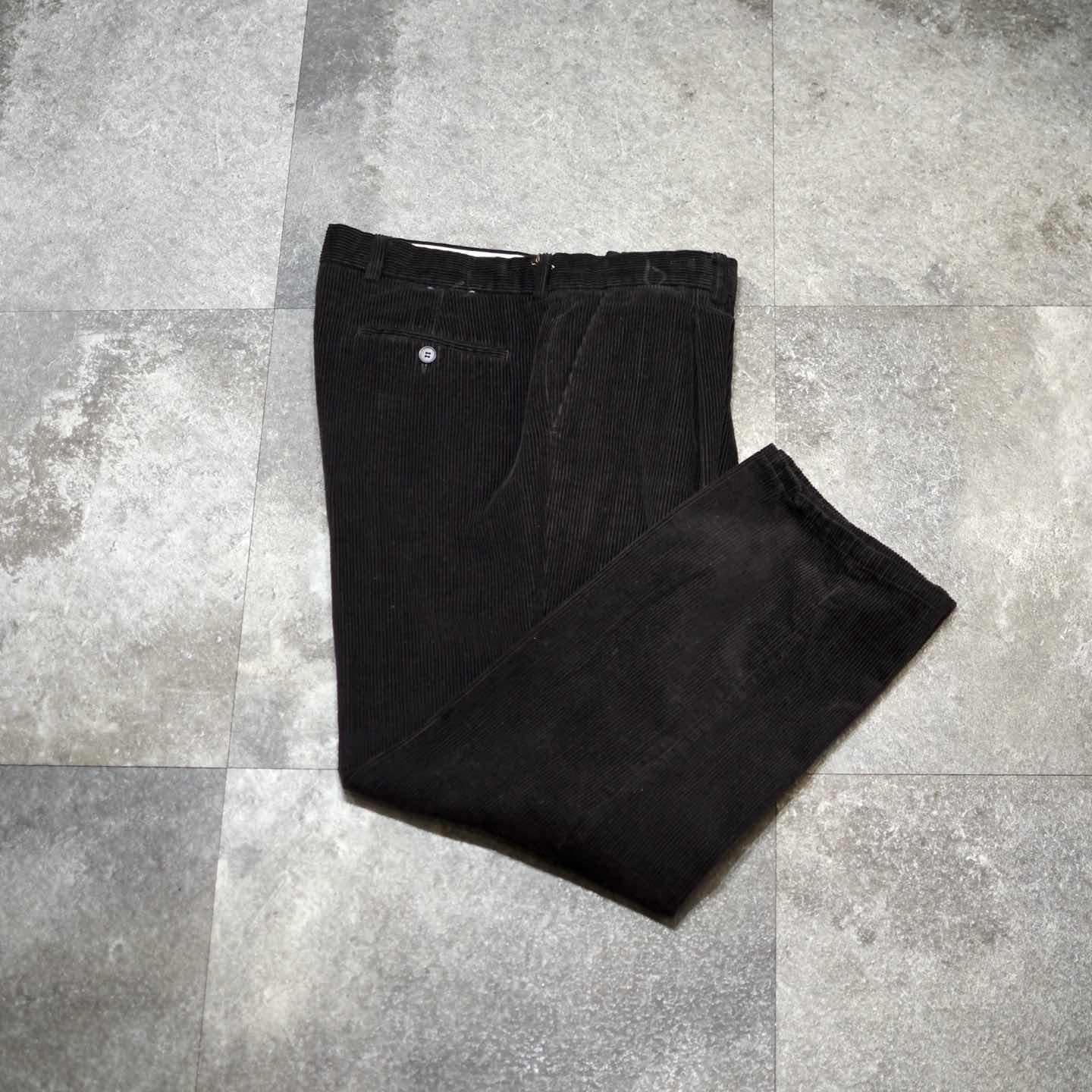 SIZE:36R ウエスト90cm 総丈100.5cm 股下71.5cm わたり35.5cm 裾幅23cm fabric/cotton 着用画像 173cm/58kg ダークブラウンの中でも黒に近いカラーの コーデュロイパンツ。 そして癖の無い、程よい太さのあるシルエットから、扱いやすい1本として、活躍する頻度が高くなりそうな個体としても自分には写りました。 "黒"ではないからこそ感じる熟れた雰囲気、 それでいて黒と同じくらい落とし込みやすい...◎ ※裾上げ等のレングス直しにつきましては、 購入前に、必ずご連絡お願い致します。 ※撮影状況により、実物と多少色が異なる 場合がございます。 ※古着を取り扱っているため、気づかない汚れや ほつれがある場合がございます。 ※サイズは着用感で選んでおり、 表記サイズは説明欄の最初に記載しております。 古着 オーバーサイズ old vintage ヴィンテージ used 80's 90's アメリカ古着 ユーロ古着 POLO RALPH LAUREN Eddie Bauer OLD GAP LANDS' END ランズエンド LLBean エルエルビーン オールドギャップ エディーバウアー ラルフローレン ブルックスブラザーズ Brooks Brothers ワイドパンツ などがお好きな方 #vintage #オーバーサイズ #old #used #90s #80s #古着 #ヴィンテージ #アメリカ古着 #ユーロ古着 #LLBean #エルエルビーン #EddieBauer #エディーバウアー #oldgap #オールドギャップ #LANDSEND #ランズエンド #NAUTICA #ノーティカ #ラルフローレン #POLORALPHLAUREN #ブルックスブラザーズ #BrooksBrothers #コーデュロイパンツ #ワイドパンツ #スラックス #タックパンツ