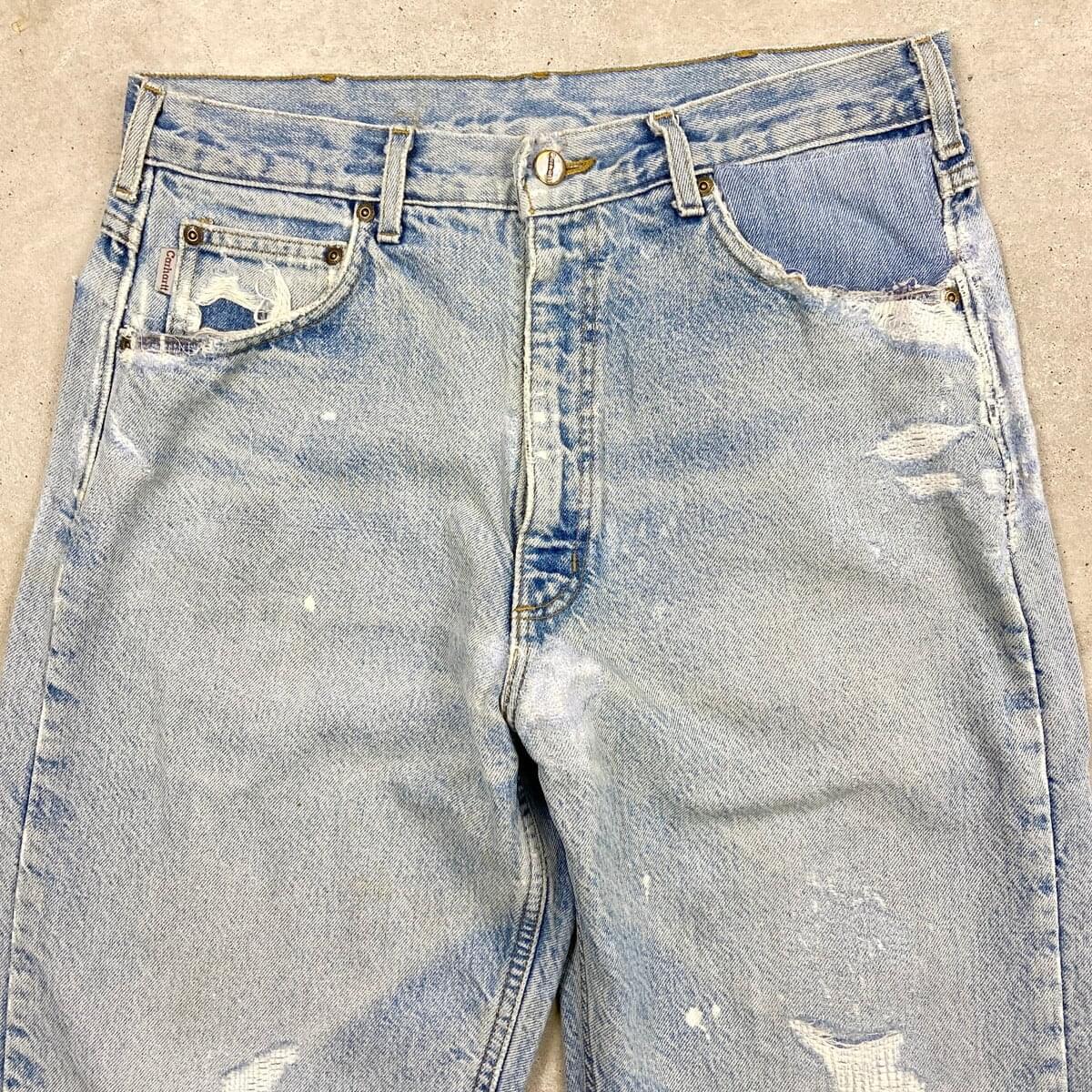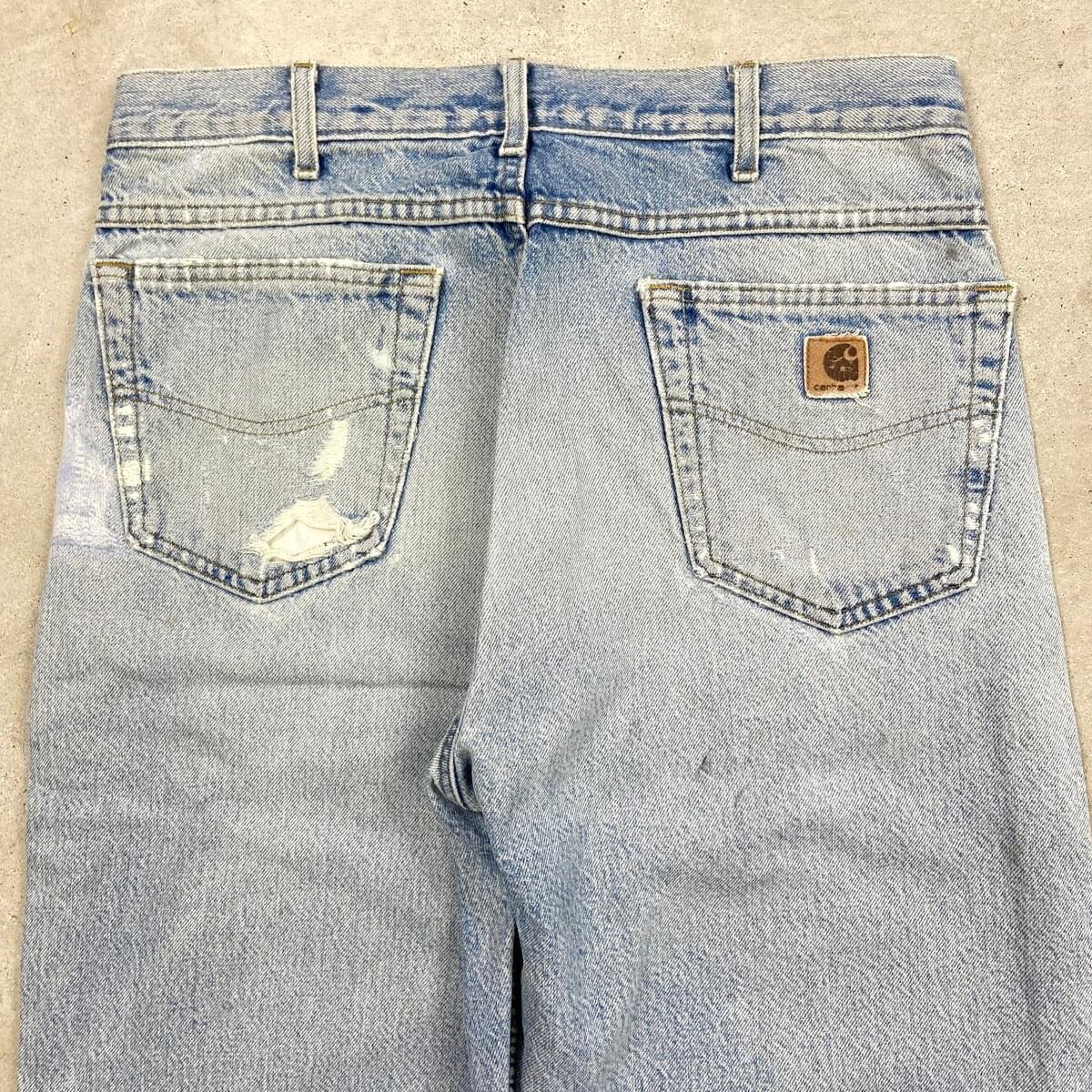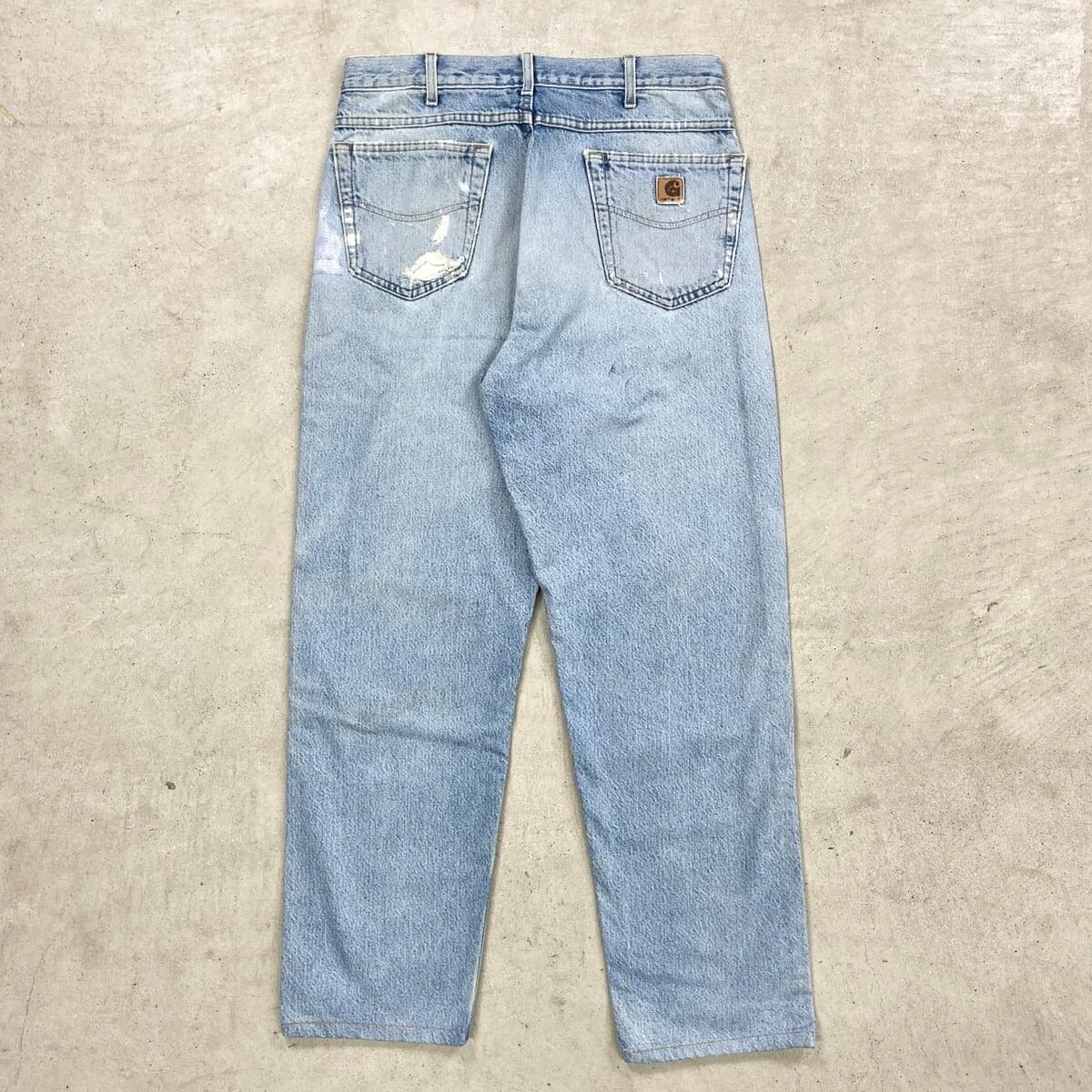 00年代 USA製 Carhartt カーハート 雰囲気系 デニムパンツ テーパード メンズW32相当 古着 00s Y2K VINTAGE ヴィンテージ アメカジ ワークパンツ ゴールデンサイズ リペア跡 青色