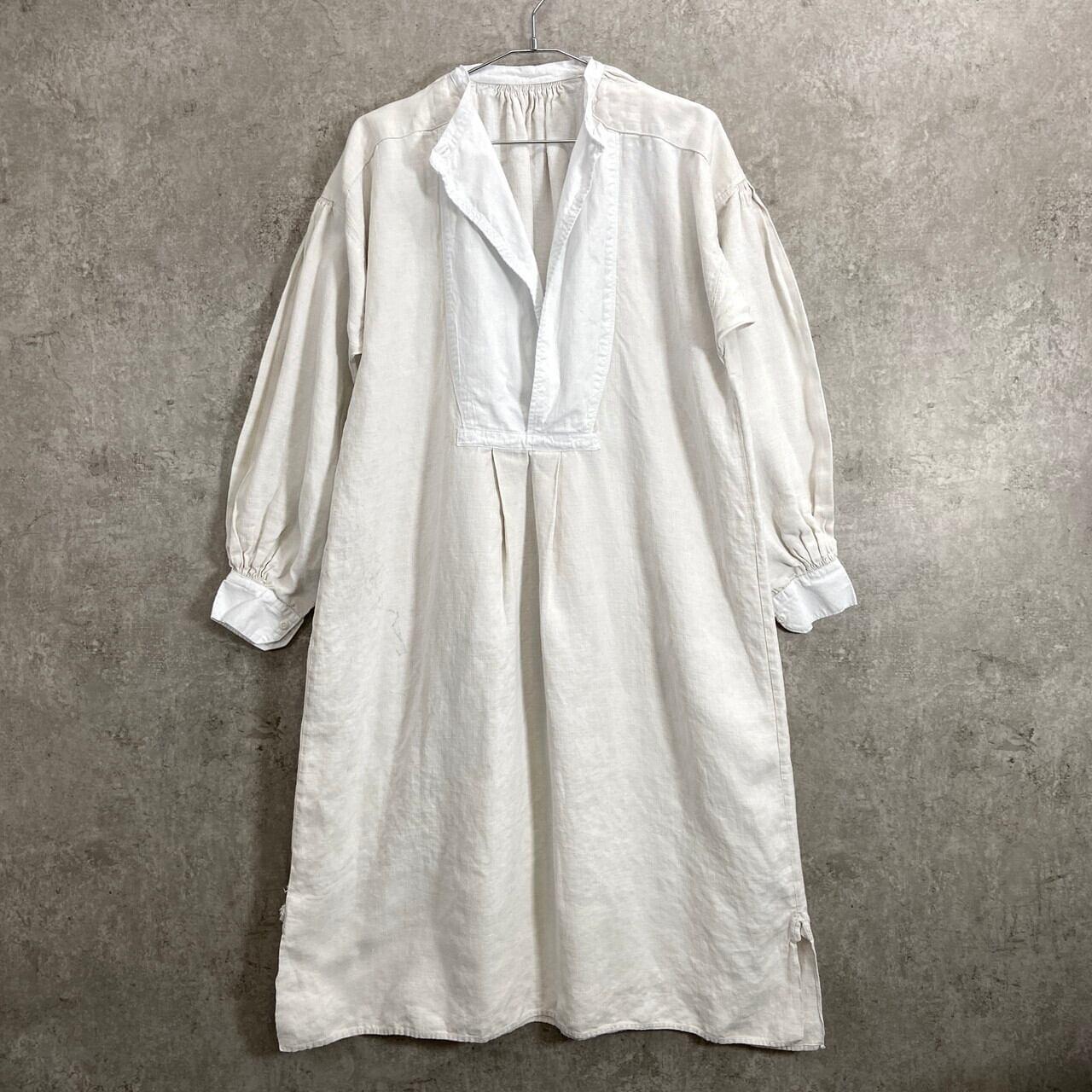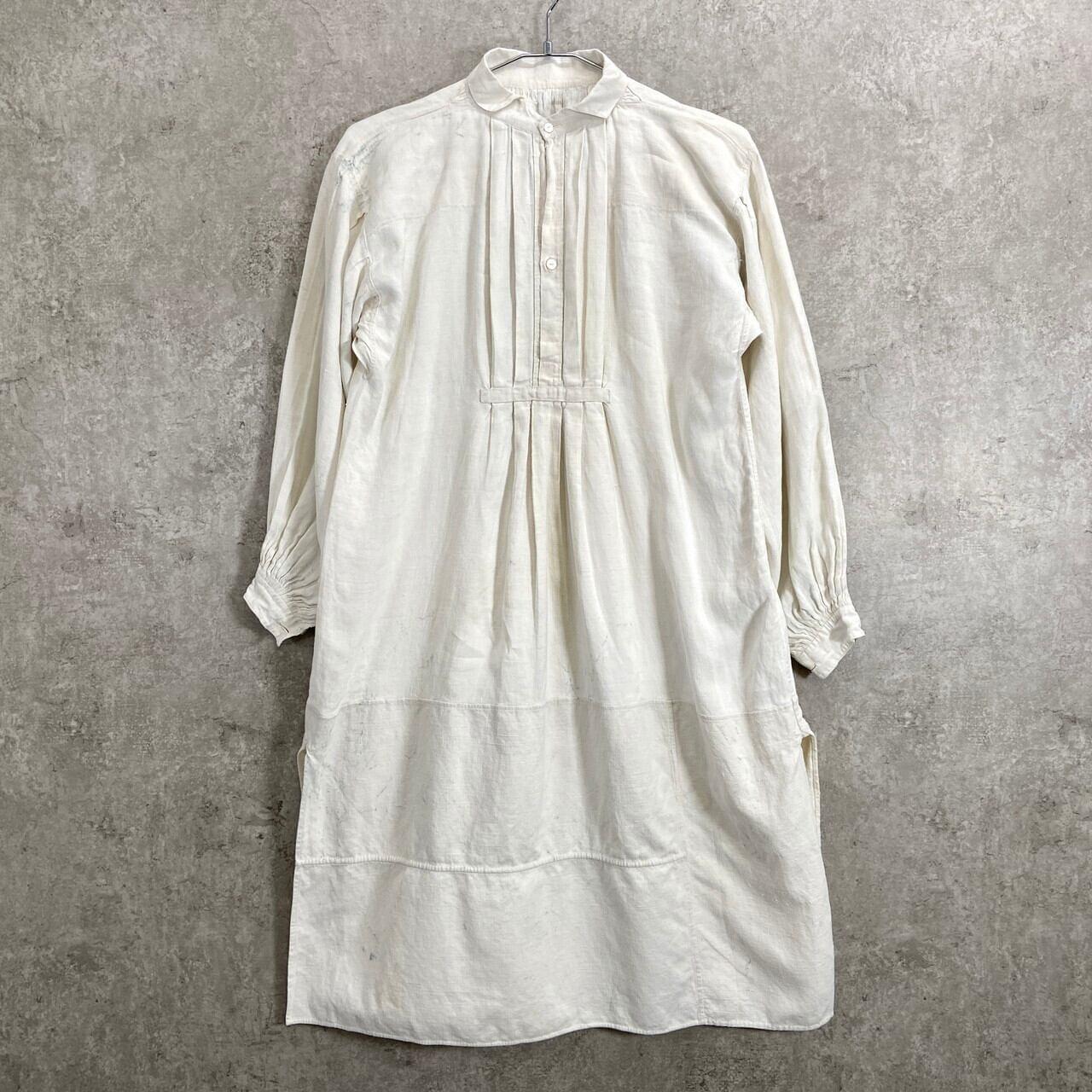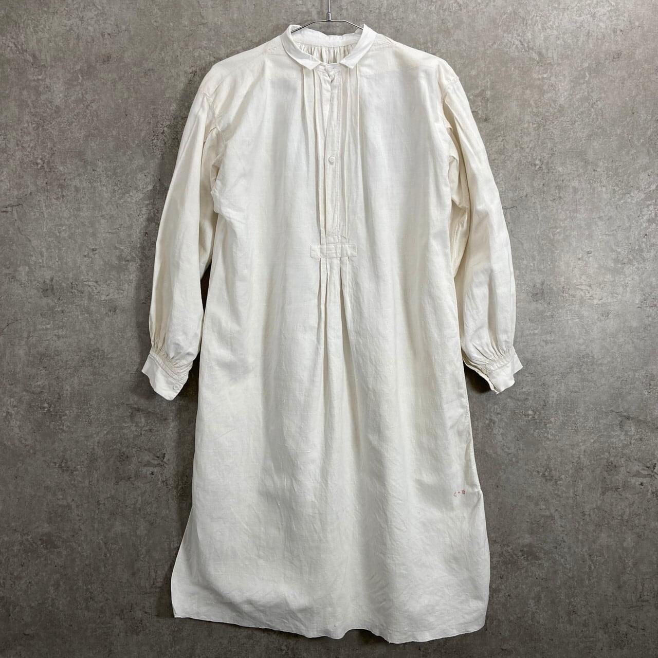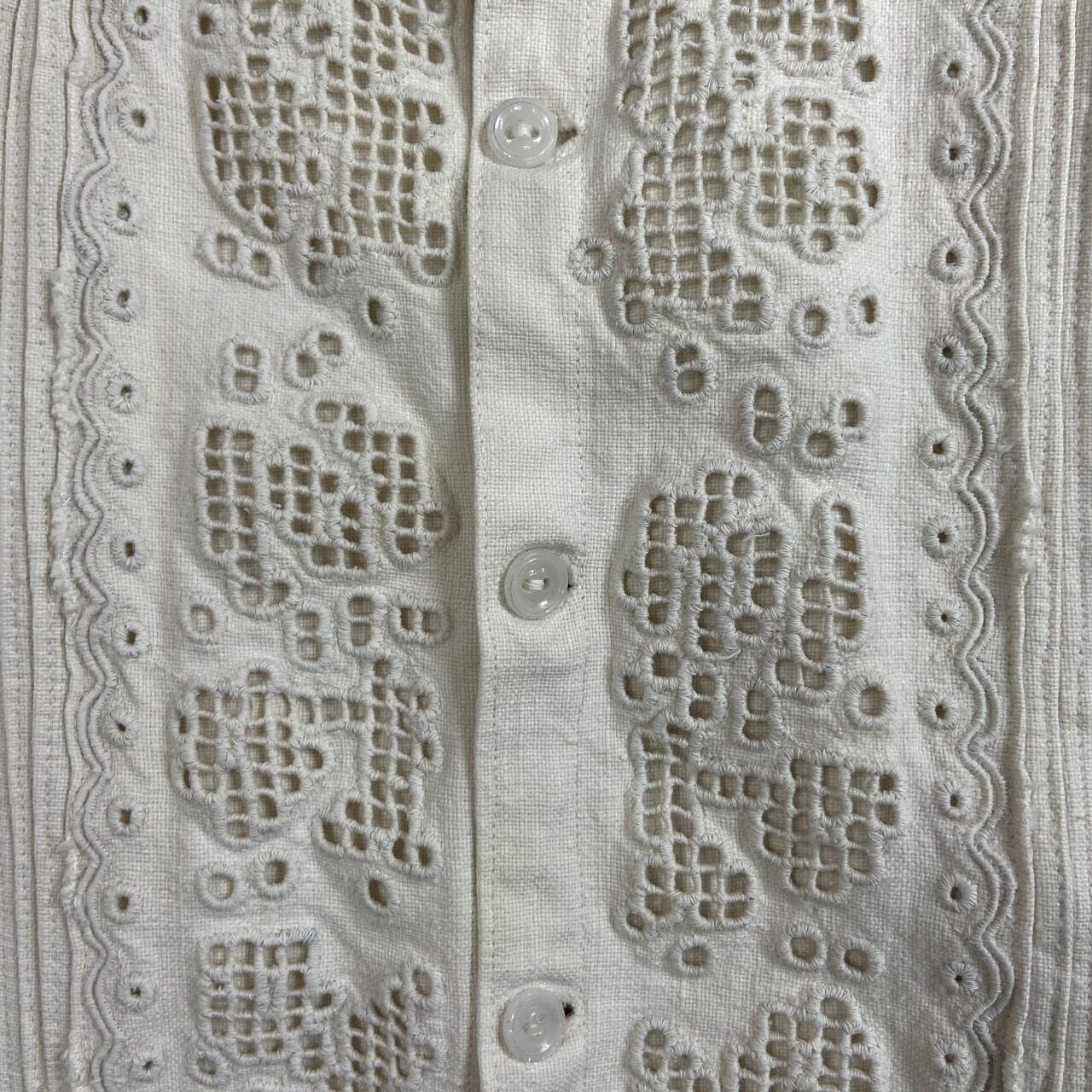 ■1900年代初頭 アンティーク ホワイトワーク刺繍ブラウス 白刺繍ブラウス レディースM相当 古着 VINTAGE ヴィンテージ フランスアンティーク エドワーディアン 白蝶貝ボタン コットンリネン 白色【ブラウス】/ホワイト 〇1900年代初頭から1920年代頃に作られた、極めて希少なアンティーク・ブラウスです。ルーマニア・ビホル(Bihor)地方の伝統的な手刺繍と、当時の西欧(エドワード朝~1920年代)の洗練されたテーラリングが融合した、歴史的価値の高い一着です。 コットンリネンのようなハリのある生地に、繊細なホワイトワークとピンタックが施された美しい一着です。ハリのある質感の中にも柔らかさがあり、アンティークならではの風合いになります。袖には細かなギャザーにより程よいボリュームスリーブ。白蝶貝ボタンも当時の時代を感じるディテールです。伝統的な民族衣装の多くが直線裁断のスモック型であるのに対し、こちらは「セットインスリーブ(肩のライン)」と「前開きのシャツ構造」を採用。身体のラインを美しく見せる西欧的なシルエットにアップデートされています。 脇はパネル切り替えによる立体的な仕立てになっています。 【サイズ】(着用感レディースM~L相当) ※計測値をご確認ください。 着丈…65 肩幅…40 袖丈…69 【生産国】フランスまたはフランス圏内(推定) 【素材】コットンリネンのような風合いの生地 【状態】100年以上前の商品ですが、目立ったダメージや汚れもほとんどなく着用感も感じられない状態です。画像でお確かめください。 【c260221150】 ※古着は洗濯、検品などのケアを行っております。(新品・デッドストックは洗濯していません。) ※モニターの発色により実物と異なる場合がございます。予めご了承ください。 ※ 海外直輸入USED品になります。