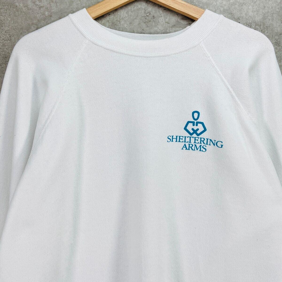 ■80年代 SHELTERING ARMS 企業ロゴプリント メンズL相当 古着 80s VINTAGE ヴィンテージ ラグランスリーブ トレーナー 白色【スウェット】/ホワイト 【ブランド】HANES 【サイズ】表記 XL(実寸メンズL相当) ※計測値をご確認ください。 着丈…67.5 身幅…60.5 裄丈…83.5 袖丈(脇下計測)…60.5 【生産国】ジャマイカ製 【素材】コットン50%、ポリエステル50% 【状態】全体的に使用感による若干の毛羽立ちがございます。 バックサイド右袖に薄汚れがあります。(写真8) 画像にてご確認ください。 【c260117104】 ※古着は洗濯、検品などのケアを行っております。(新品・デッドストックは洗濯していません。) ※モニターの発色により実物と異なる場合がございます。予めご了承ください。 ※ 海外直輸入USED品になります。