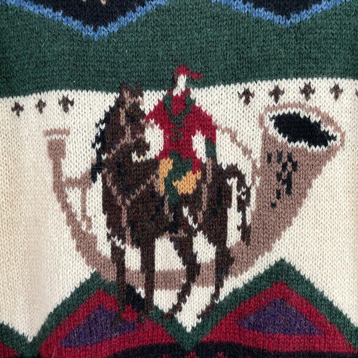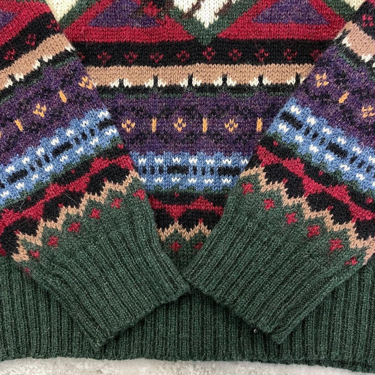 ■80年代 Woolrich ウールリッチ 乗馬 アニマル柄 ウールニットセーター レディースL相当 古着 80s ヴィンテージ VINTAGE 総柄 グリーン ベージュ レッド パープル ブルー【ニットセーター】/マルチカラー 【ブランド】Woolrich ウールリッチ 【サイズ】表記不明(着用感レディース?相当) ※計測値をご確認ください。 着丈…59.5 身幅…51 肩幅…45.5 袖丈…62 【生産国】表記不明 【素材】表記不明(おそらくウール) 【状態】フロントに一部ほつれがございます。 その他目立ったダメージや汚れはありません。 画像にてご確認ください。 【c260125105】 ※古着は洗濯、検品などのケアを行っております。(新品・デッドストックは洗濯していません。) ※モニターの発色により実物と異なる場合がございます。予めご了承ください。 ※ 海外直輸入USED品になります。