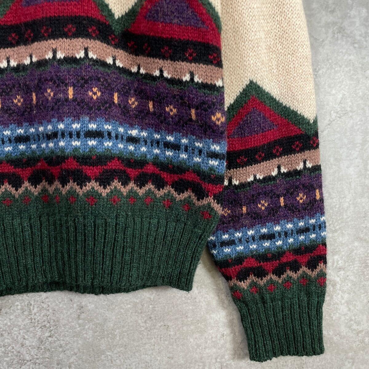 90年代 ORVIS オービス ウールニットセーター フェアアイル柄 メンズL相当 古着 90s ヴィンテージ VINTAGE アウトドア 総柄ニット ライトブラウン 茶色