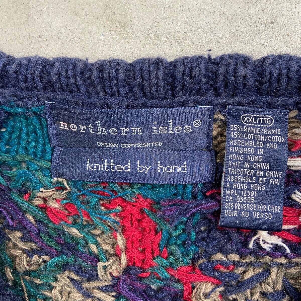 ■90年代 northern isles ハンドニット ネイティブ柄 ラミー混 コットンニットセーター メンズ2XL 古着 デザインニット 総柄 ビッグサイズ 大きいサイズ【ニットセーター】/マルチカラー 【ブランド】northern isles 【サイズ】表記 XXL/TTG ※計測値をご確認ください。 着丈…79 身幅…62 肩幅…70 袖丈…60 【生産国】香港製 【素材】ラミー55% コットン45% 【状態】多少の使用感はございますが目立った汚れやダメージは御座いません。 脇部分にダメージが御座います。 画像にてご確認ください。 【c260126007】 ※古着は洗濯、検品などのケアを行っております。(新品・デッドストックは洗濯していません。) ※モニターの発色により実物と異なる場合がございます。予めご了承ください。 ※ 海外直輸入USED品になります。