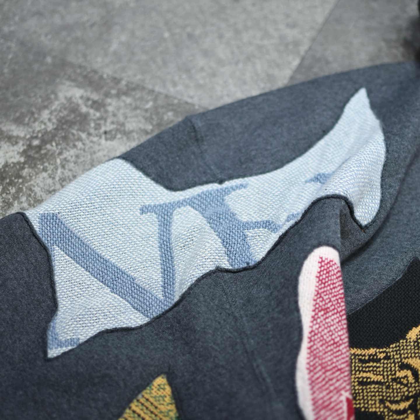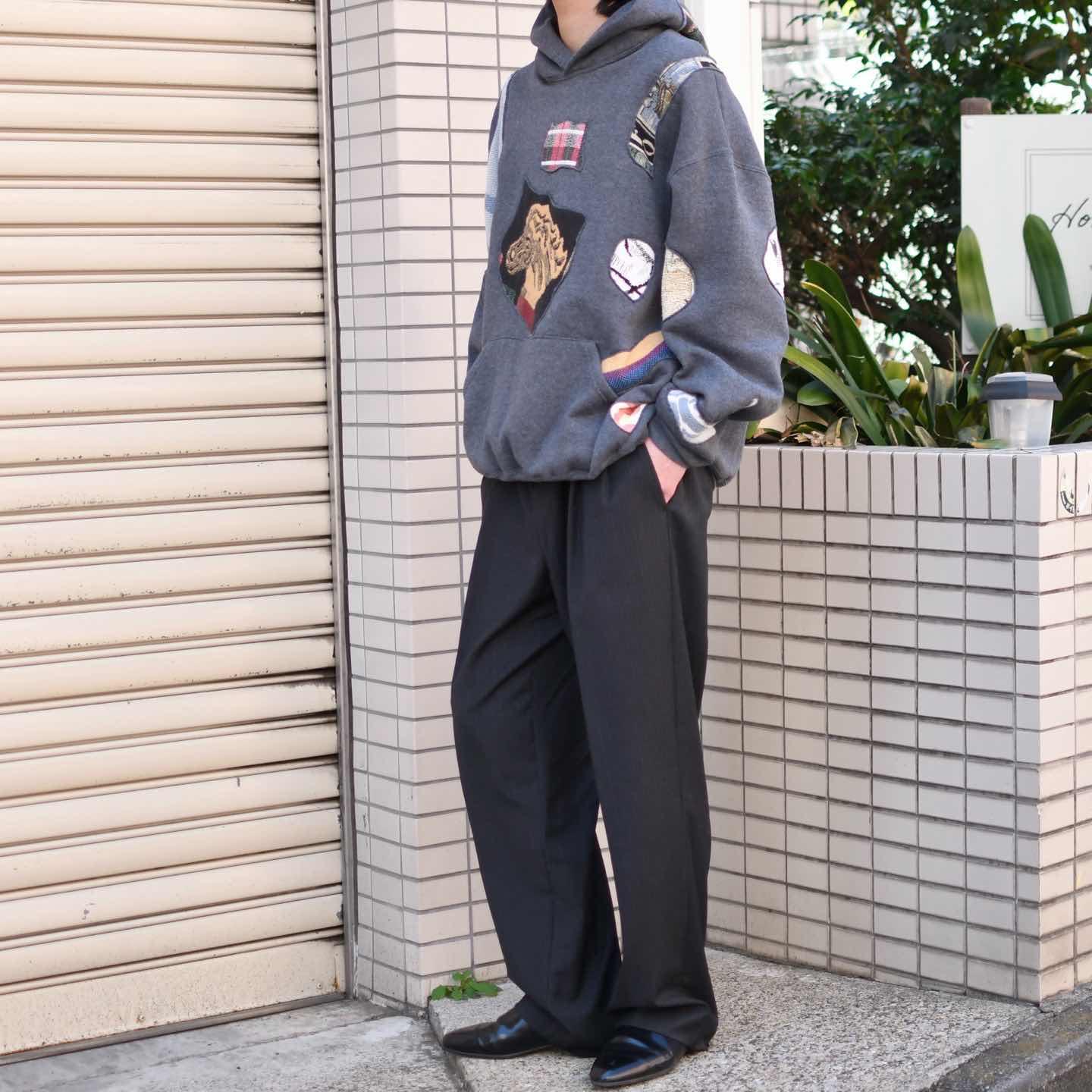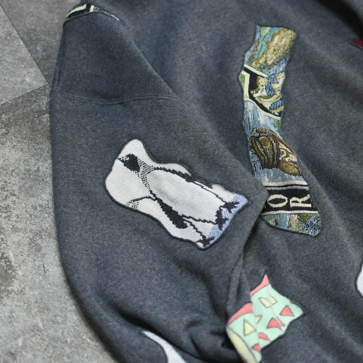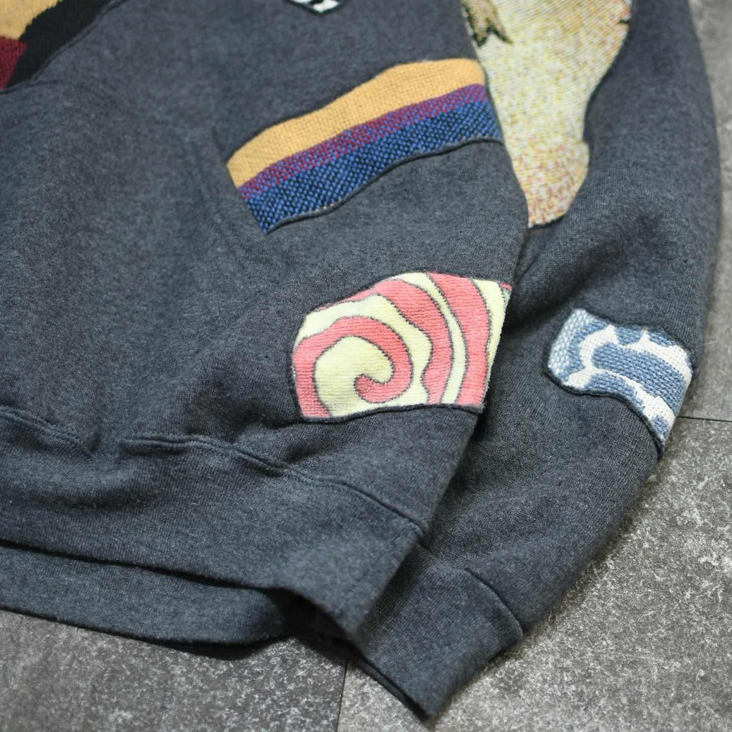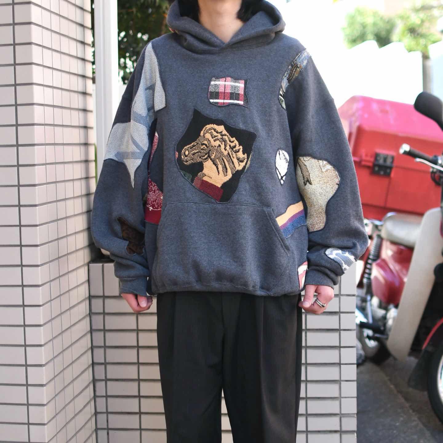 古着 リメイク つぎはぎ ラグ 絨毯 リメイク パーカー フーディ グレー