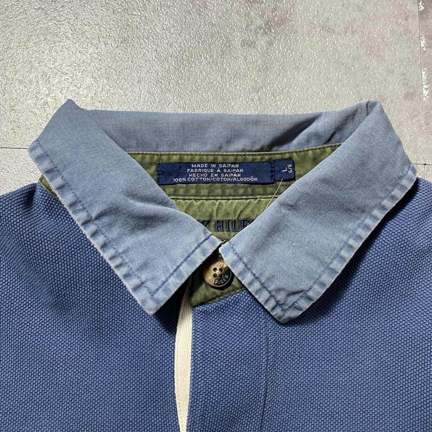 90sトミーヒルフィガー 刺繍ワンポイント マルチボーダー ロンT ポロシャツ