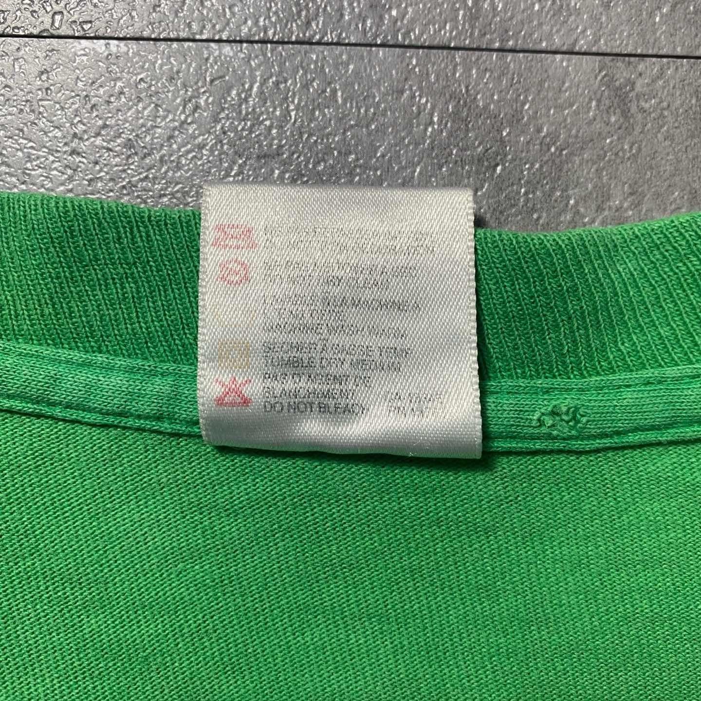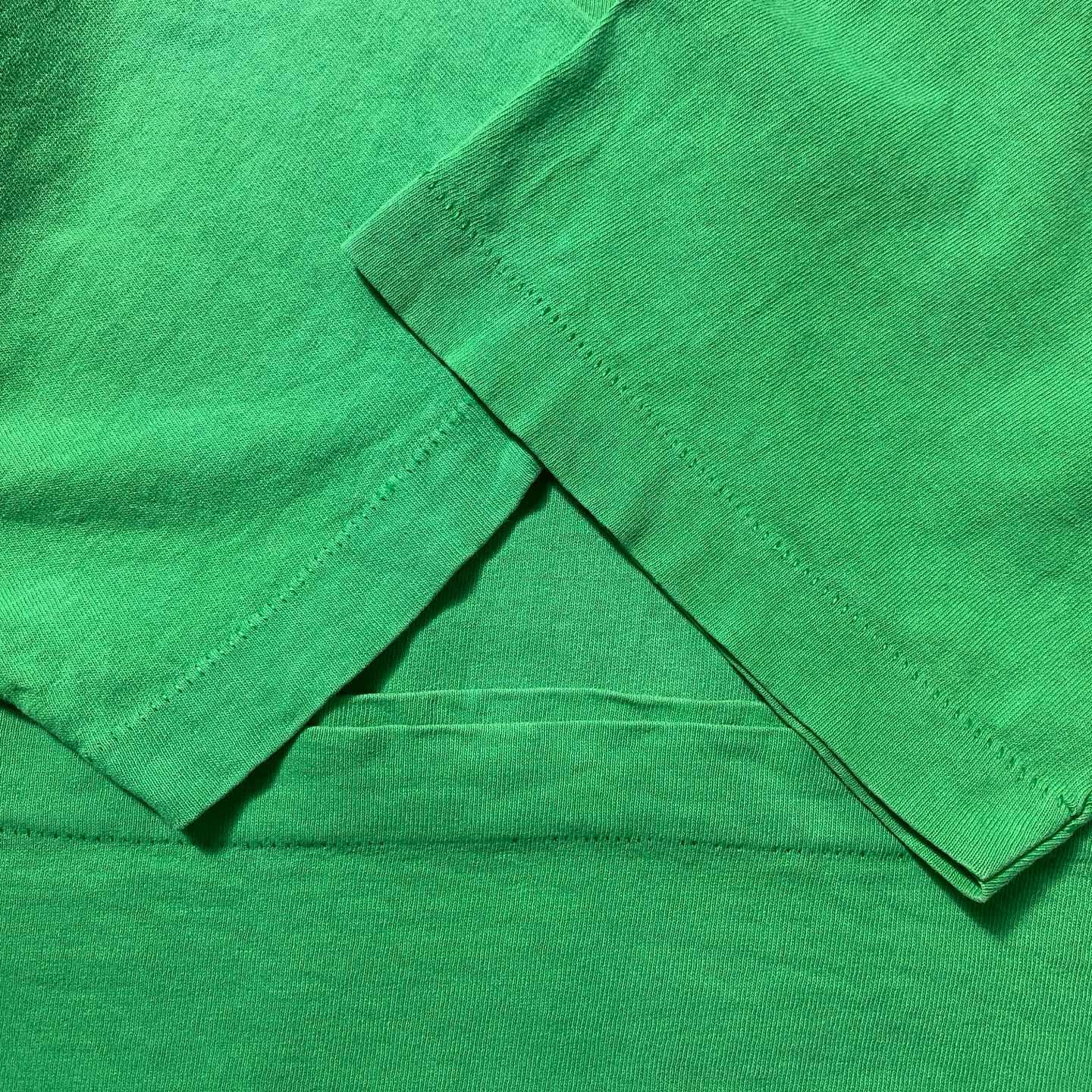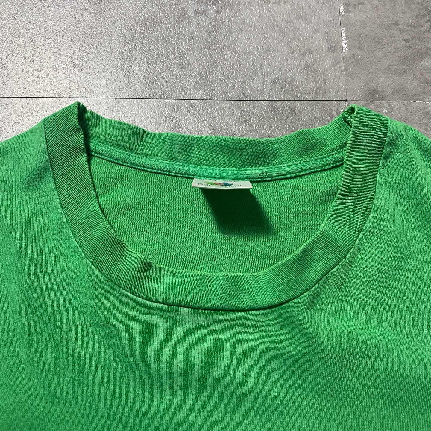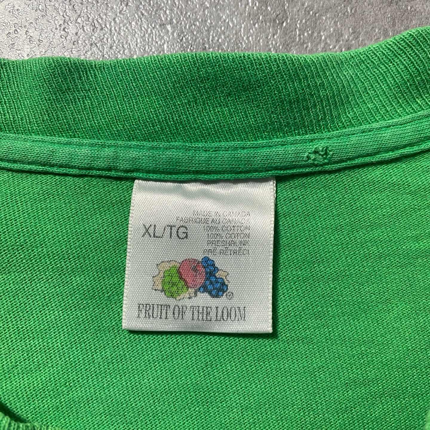 ◯ Explanation ◯ 90年代頃のTHE BODY SHOPプロモーションTシャツ。 ナチュラルコスメブランドとして世界的に知られる同ブランドの、販促用に制作された一枚です。 バックには「Fills like the first time!」のメッセージとボトルモチーフを大胆に配置。 イエロー×ブルー×ピンクの配色が90年代らしいポップな雰囲気を演出しています。 フロントにもワンポイントで同モチーフが入り、前後で統一感のあるデザインに仕上がっています。 ボディはFruit of the Loom製。 袖・裾ともにシングルステッチ仕様で、90年代特有のディテールもしっかりと確認できます。 プリントには経年によるクラックが見られますが、ヴィンテージらしい風合いとして雰囲気抜群のコンディションです。 企業系Tシャツの中でもデザイン性が高く、ファッションとしても取り入れやすい一着です。 ○Size○ 表記→XL ・着丈74 ・身幅60 ・肩幅52 ・袖丈19.5 (cm) ○Color○ ・グリーン ○Material○ ・100%コットン ○Condition○ ・フロント腹部に薄汚れ箇所あり ○Caution○ 当店で取り扱っている商材は全て『古着』となっております。 そのため、多少の状態難(ほつれ、傷、汚れ、リブの伸び、使用感、擦れ、色あせ、etc)がある場合がございます。 新品同様の完璧なお品物をお求めの方は当店でのお買い物を控えて頂きますよう宜しくお願いします。 また、購入された商品に関しましては、購入日時から起算して『72時間以内に』発送手続きの方を取らせて頂きます。 お急ぎの場合は購入前に当店オンラインストアの方にお問い合わせ頂きますよう宜しくお願いします。 26/549